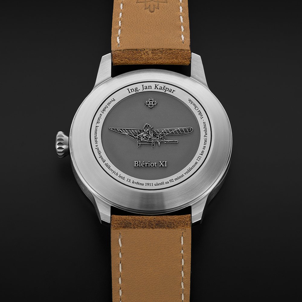 Víko hodinek zdobí silueta Kašparova stroje Blériot XI, bok pouzdra znázorňuje křivku a počet kilometrů letu z Pardubic do Velké Chuchle. Světlý minimalisticky pojatý číselník zdobí elegantní římské číslice a podpis Jana Kašpara. Hodinky jsou osazeny mechanickým strojkem ETA s automatickým nátahem od renomovaného švýcarského výrobce. Limitovaná edice bude vyrobena v počtu 121 kusů, v odkazu na počet kilometrů, které se odvážnému vzduchoplavci podařilo překonat při jeho legendárním letu. 20. května 2023 uplynulo 140 let od jeho narození.