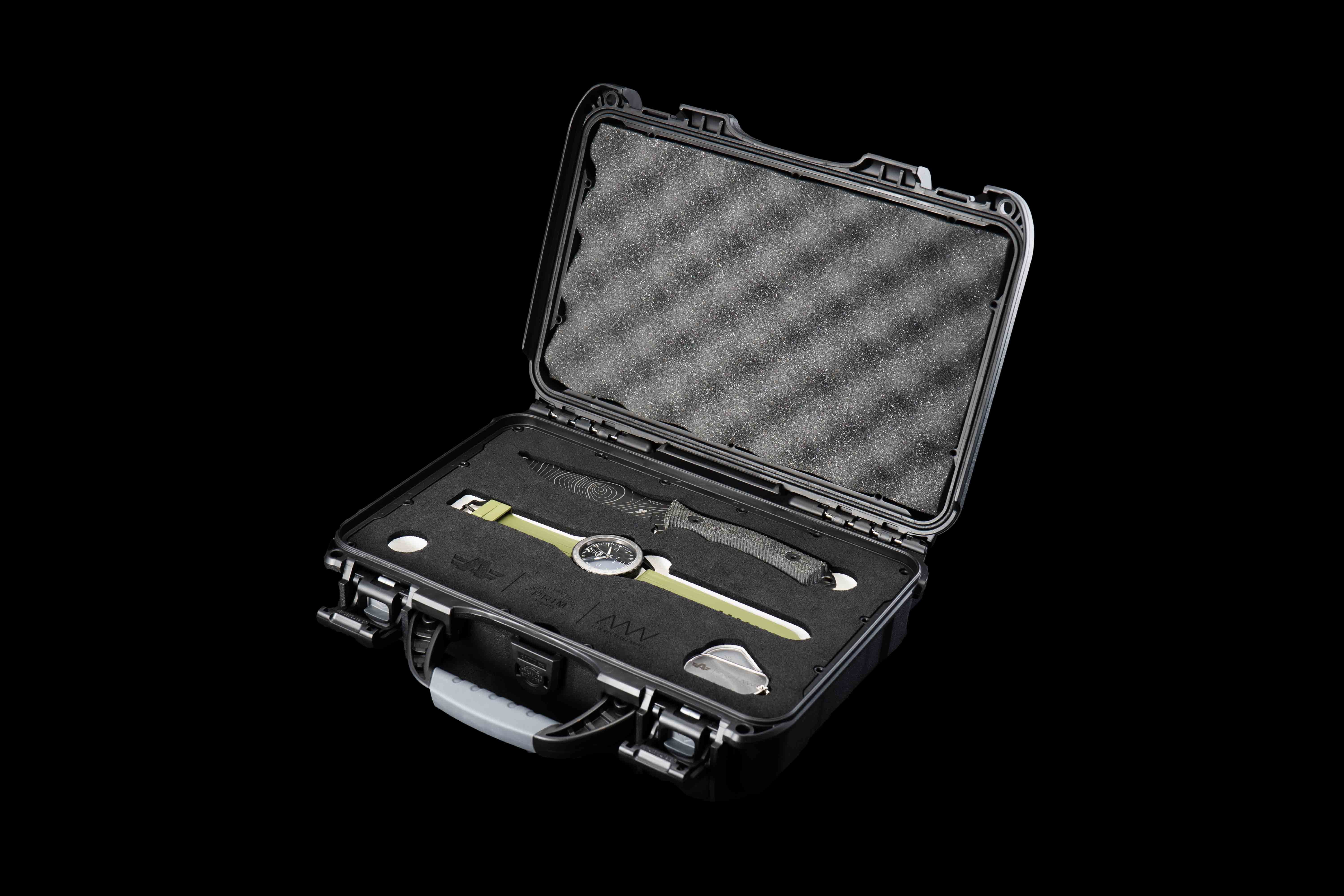 V exkluzivním balení značky NANUK najdete nejen samotné hodinky, ale také černý NATO řemínek, nástroj na výměnu řemenů, sadu psích známek s kódem ke hře ARMA a precizně zpracovaný nůž od české firmy ANV (Acta non verba), včetně pouzdra.