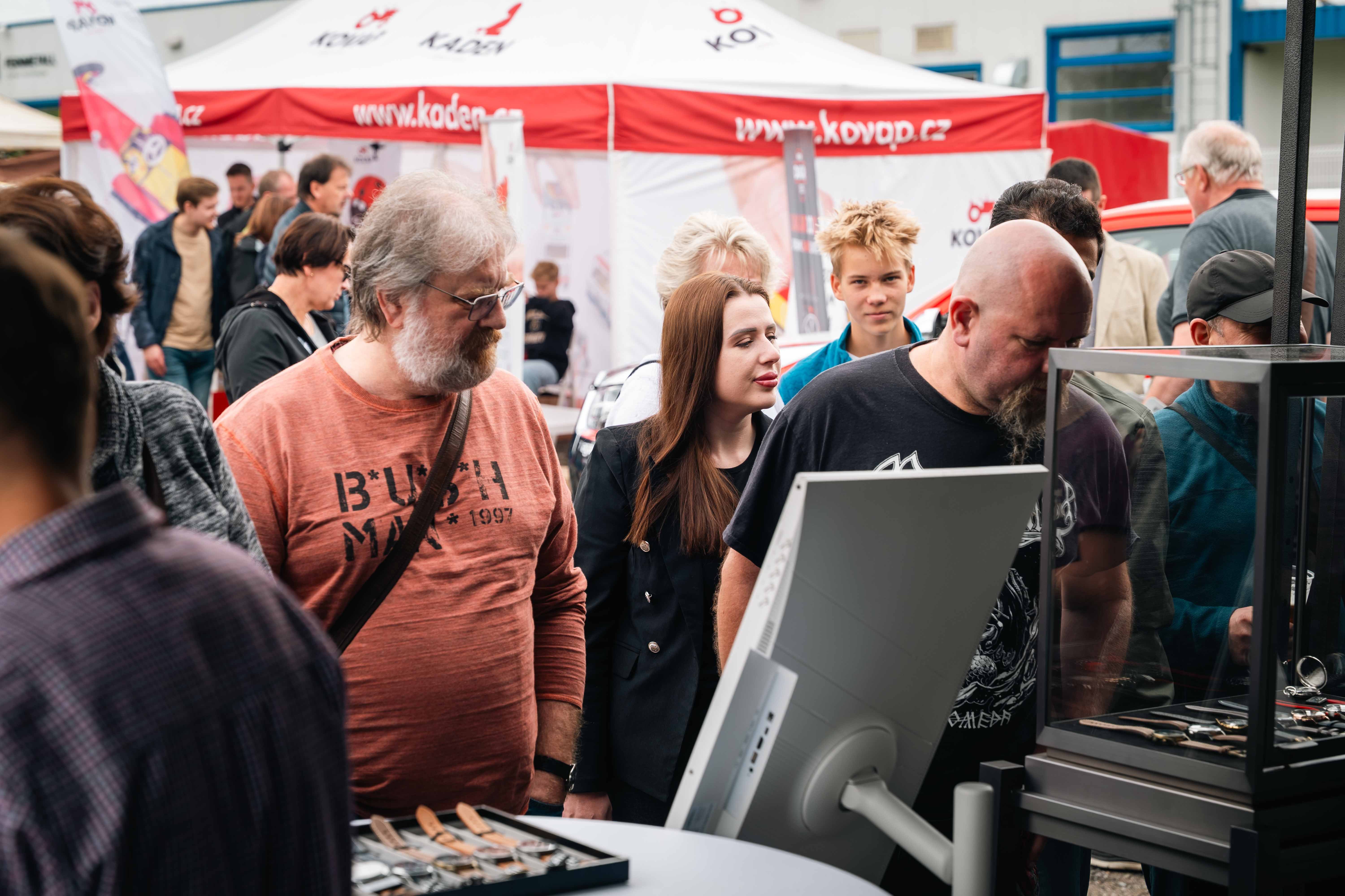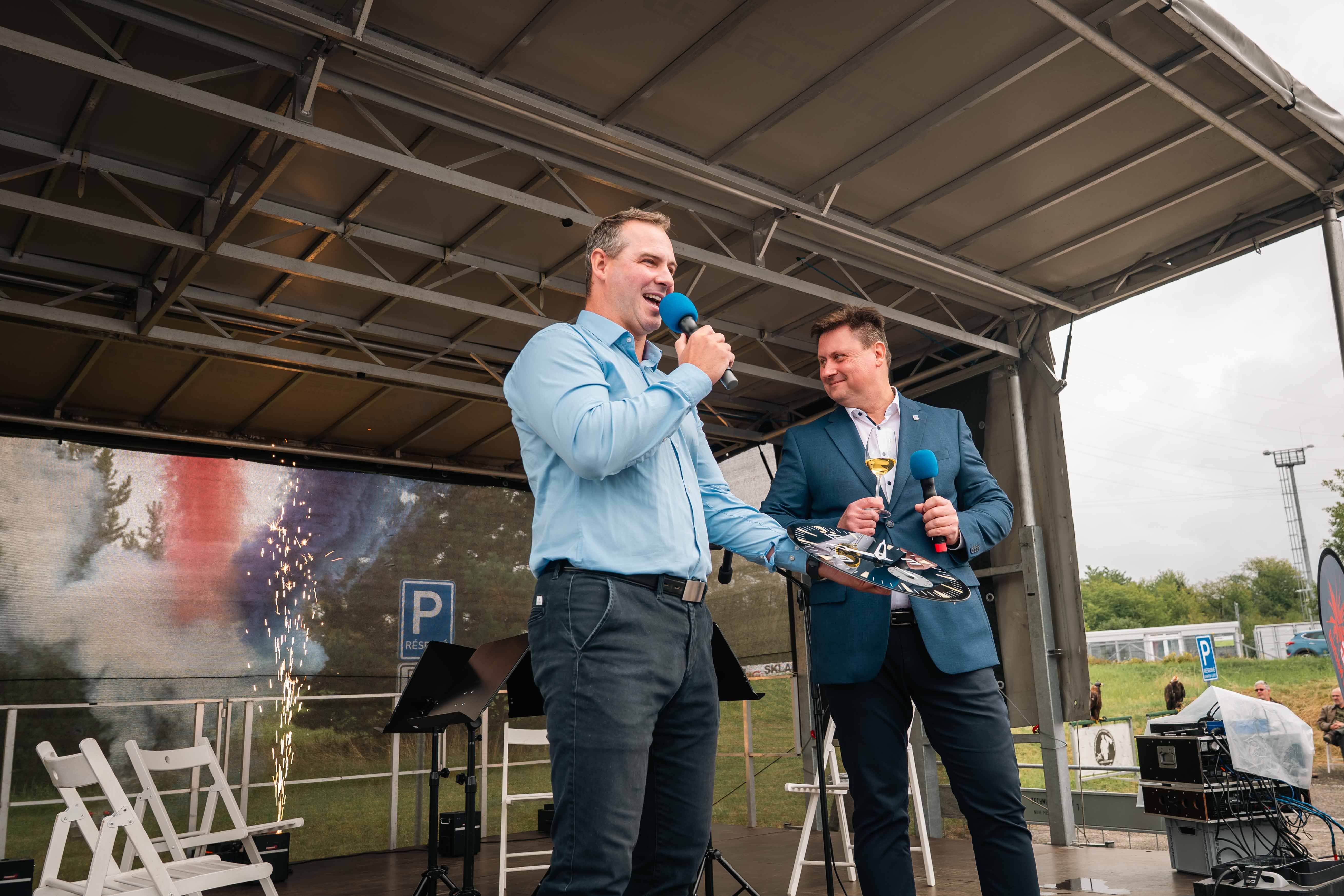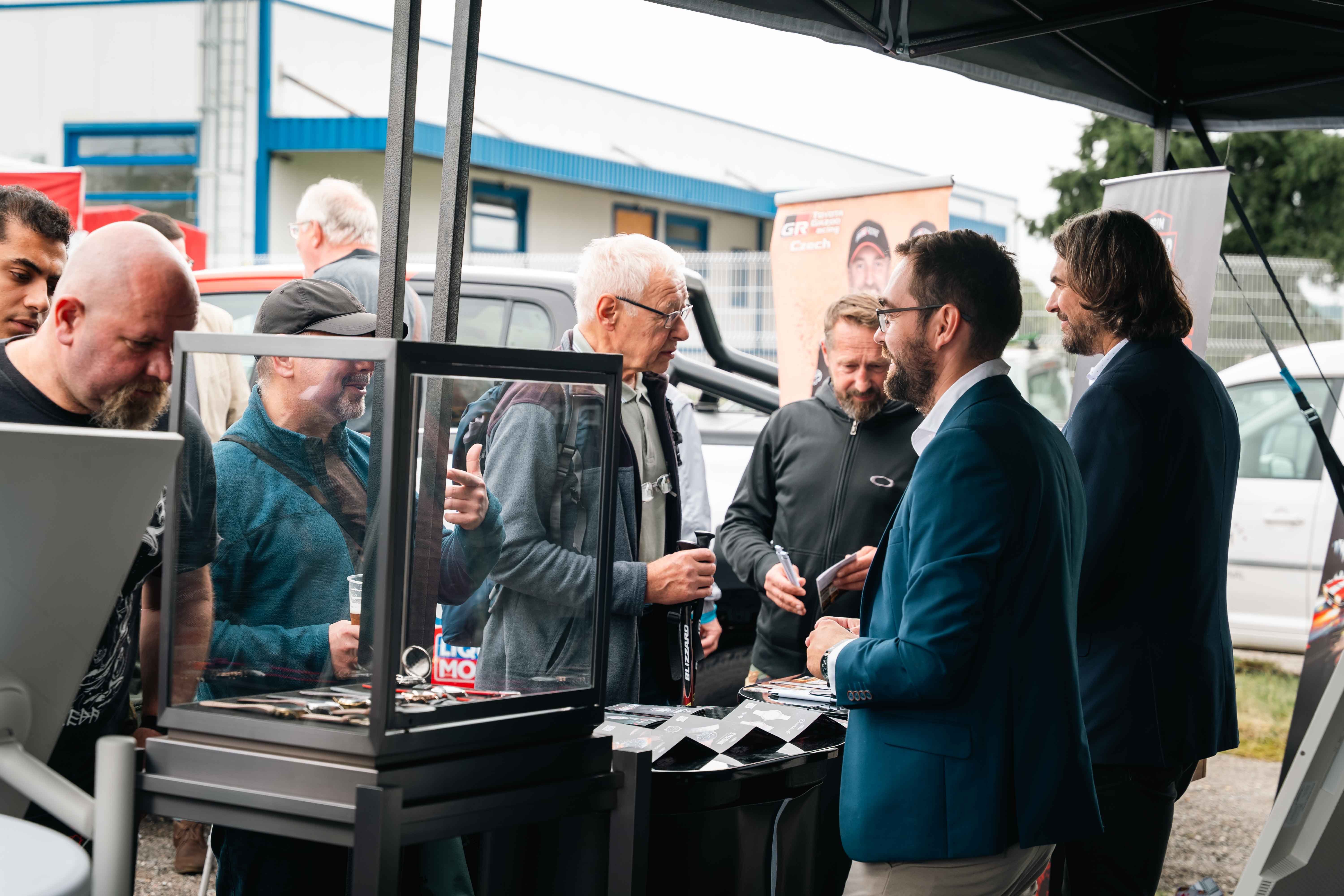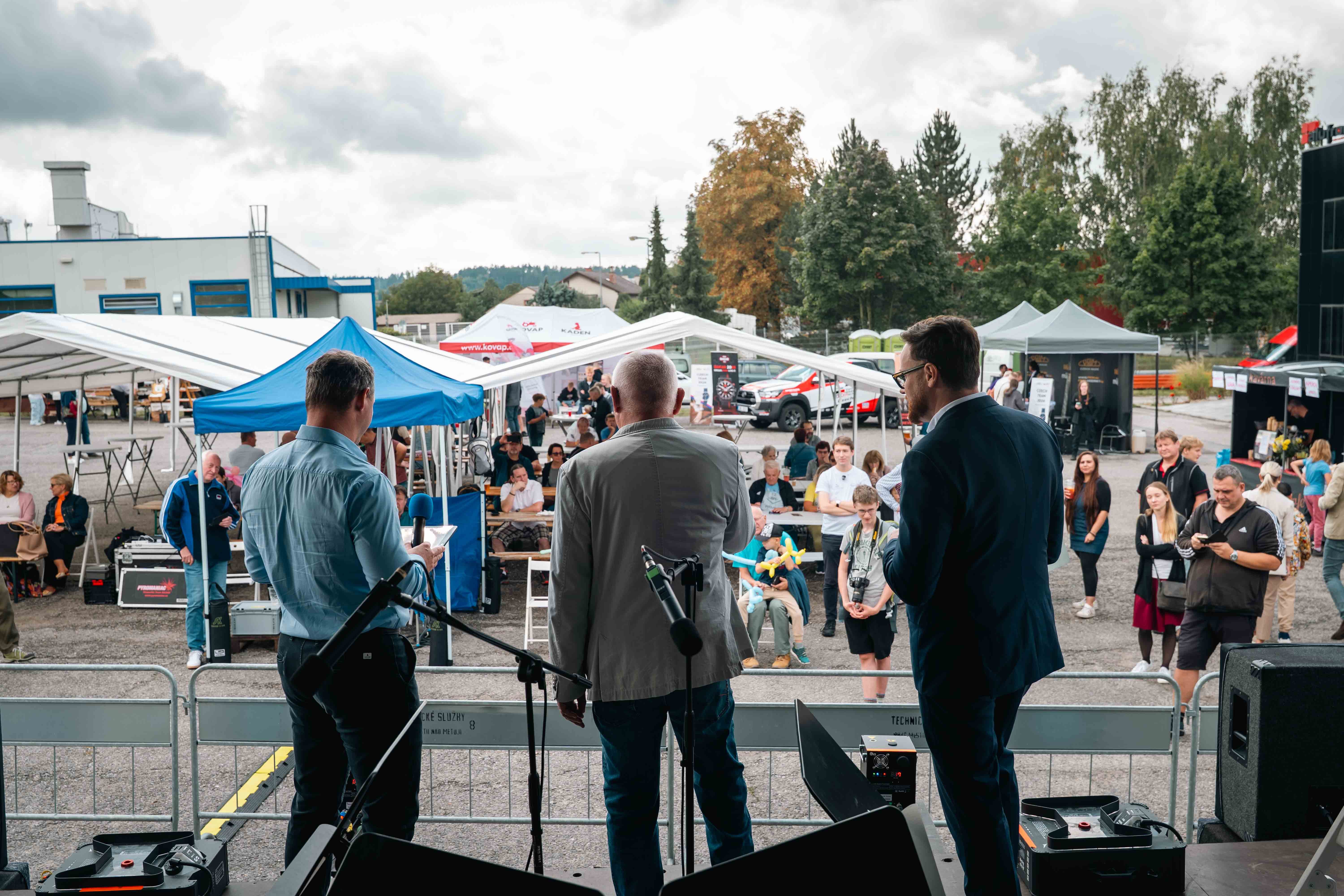 Aby si na své přišli všichni, připravili jsme venkovní doprovodný program. Děti se bavily na skákacím hradě či v balónkových dílničkách, dospělé nadchla ukázka sokolníků se dvěma orly – symbolicky při oslavách modelu Orlík. Nechyběly lokální stánky se šperky, hračkami či občerstvením, ani náš vlastní prodejní stánek. Velkou pozornost letos poutala také prezentace našeho partnera Toyoty.