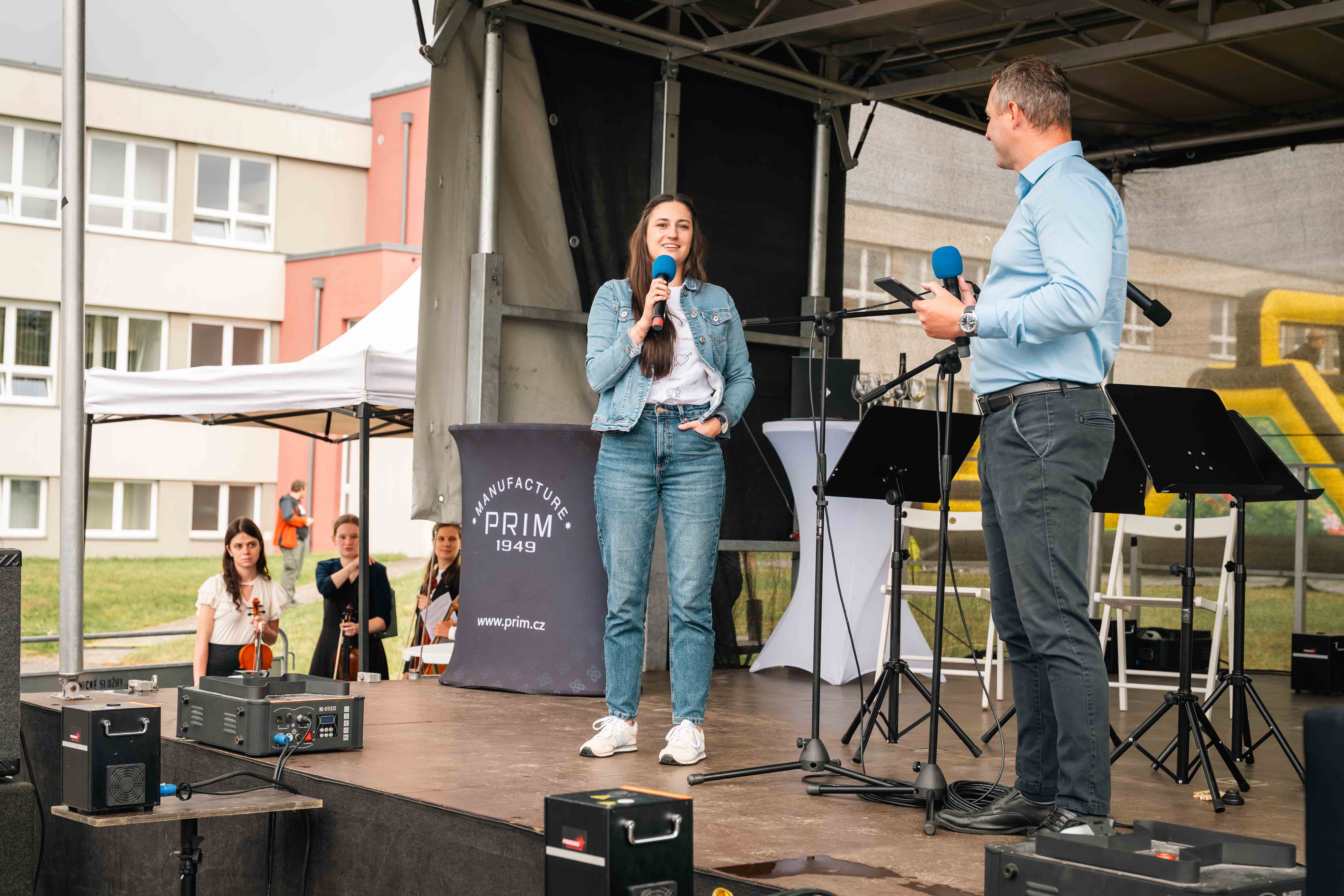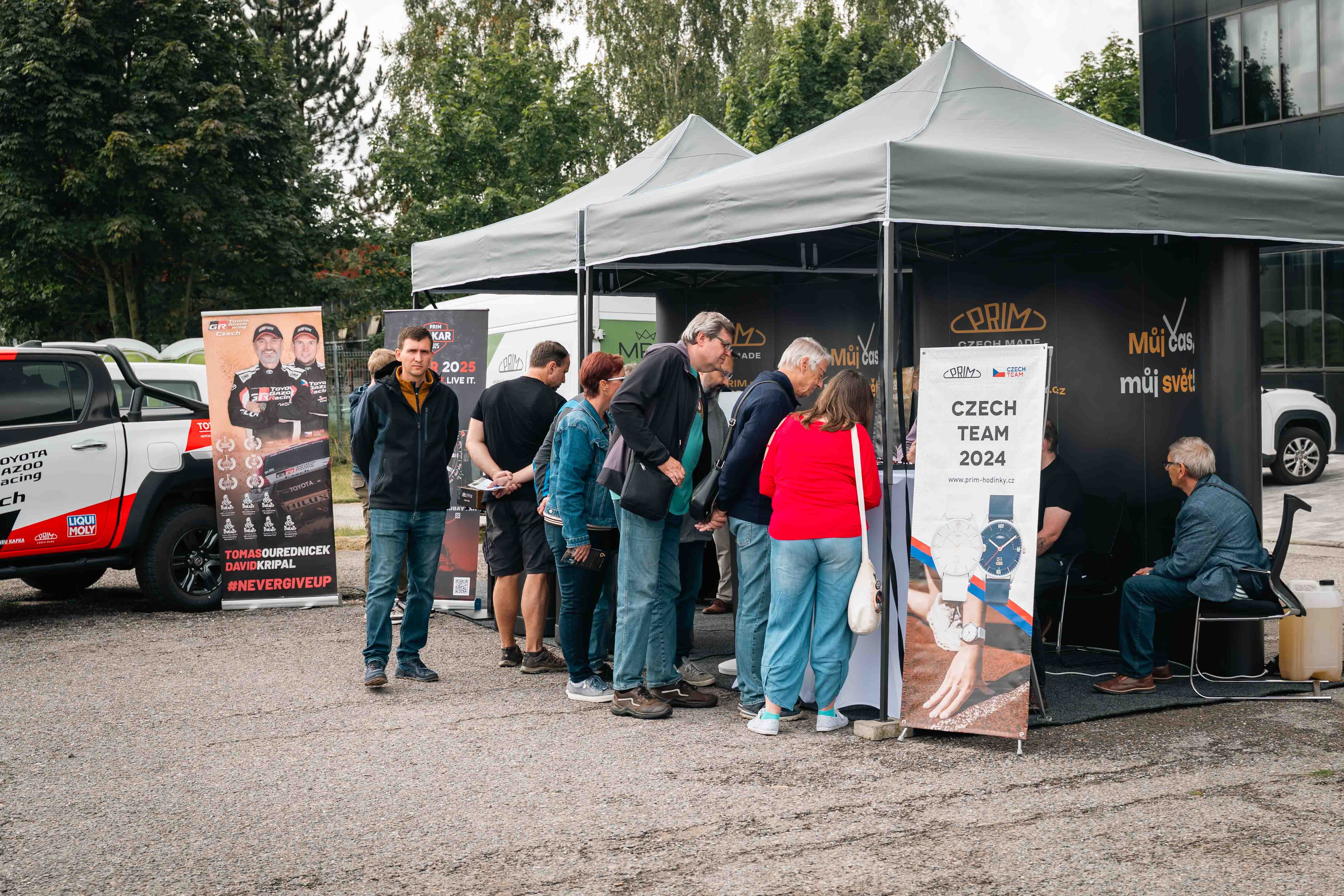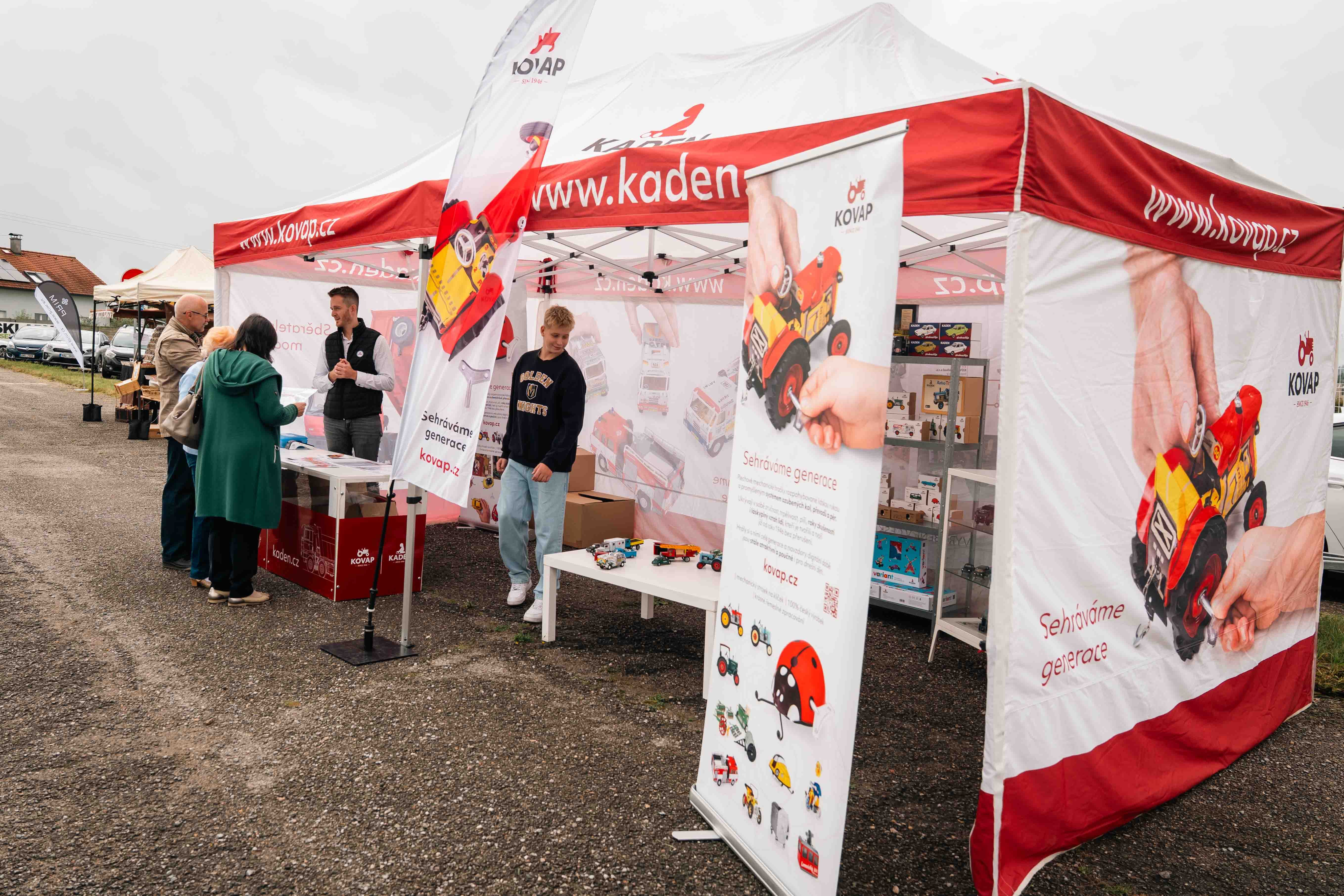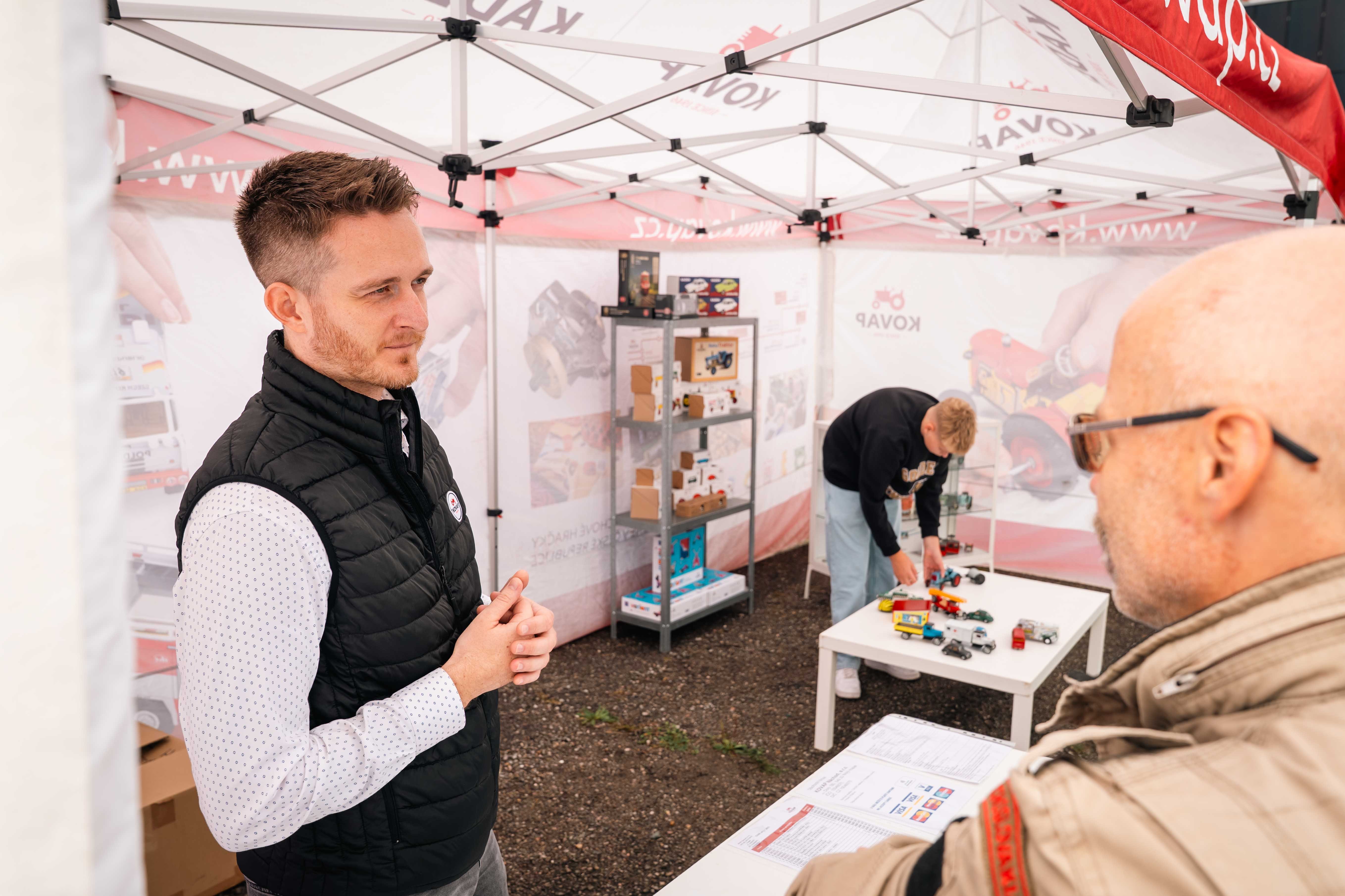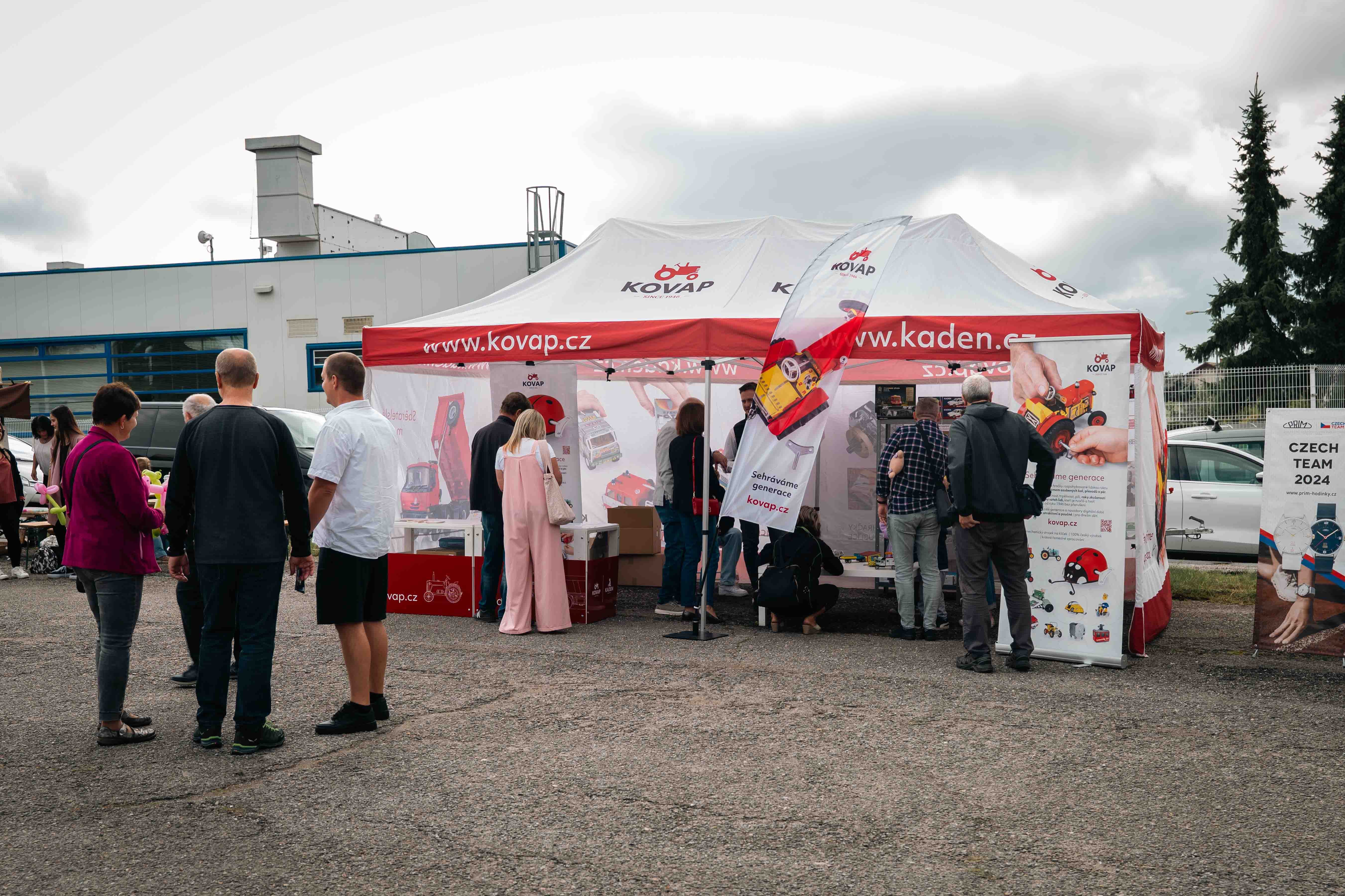 Aby si na své přišli všichni, připravili jsme venkovní doprovodný program. Děti se bavily na skákacím hradě či v balónkových dílničkách, dospělé nadchla ukázka sokolníků se dvěma orly – symbolicky při oslavách modelu Orlík. Nechyběly lokální stánky se šperky, hračkami či občerstvením, ani náš vlastní prodejní stánek. Velkou pozornost letos poutala také prezentace našeho partnera Toyoty.