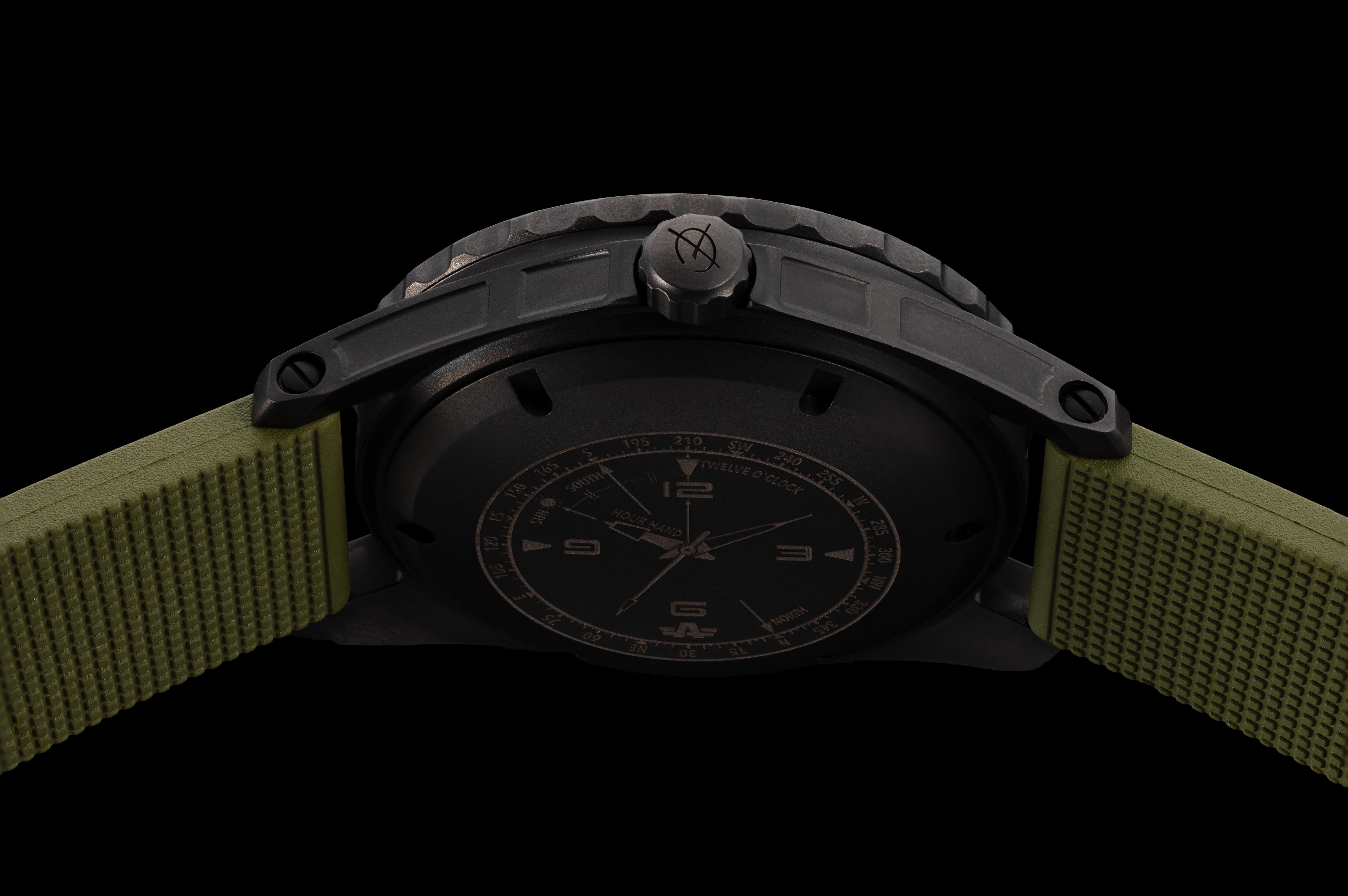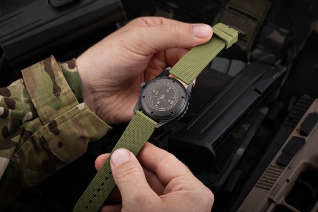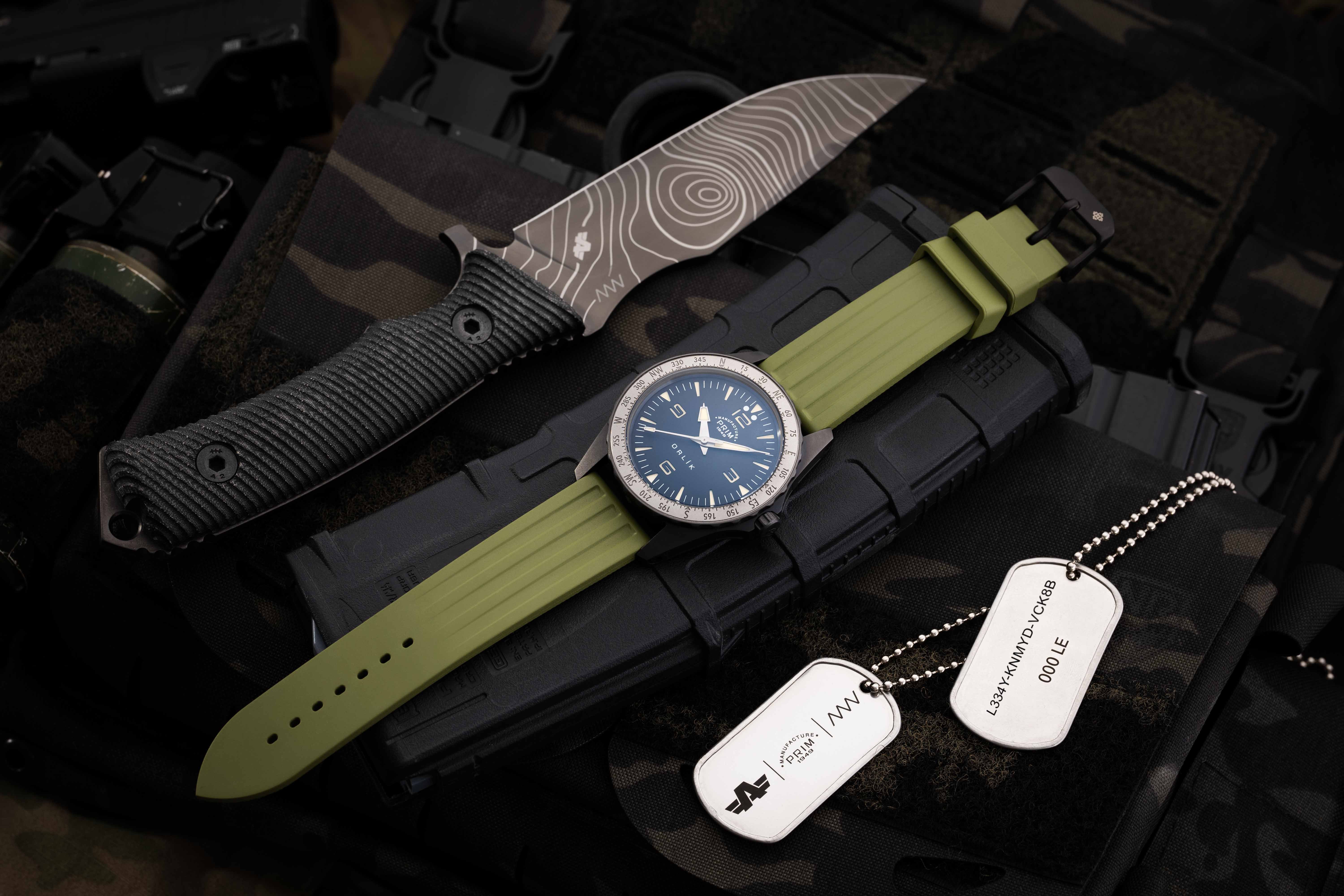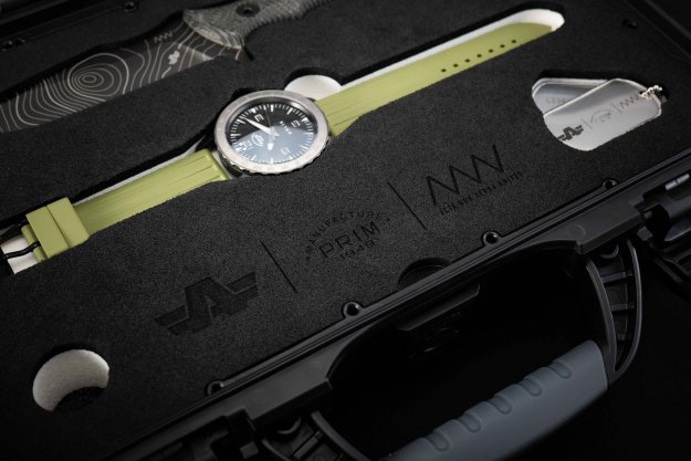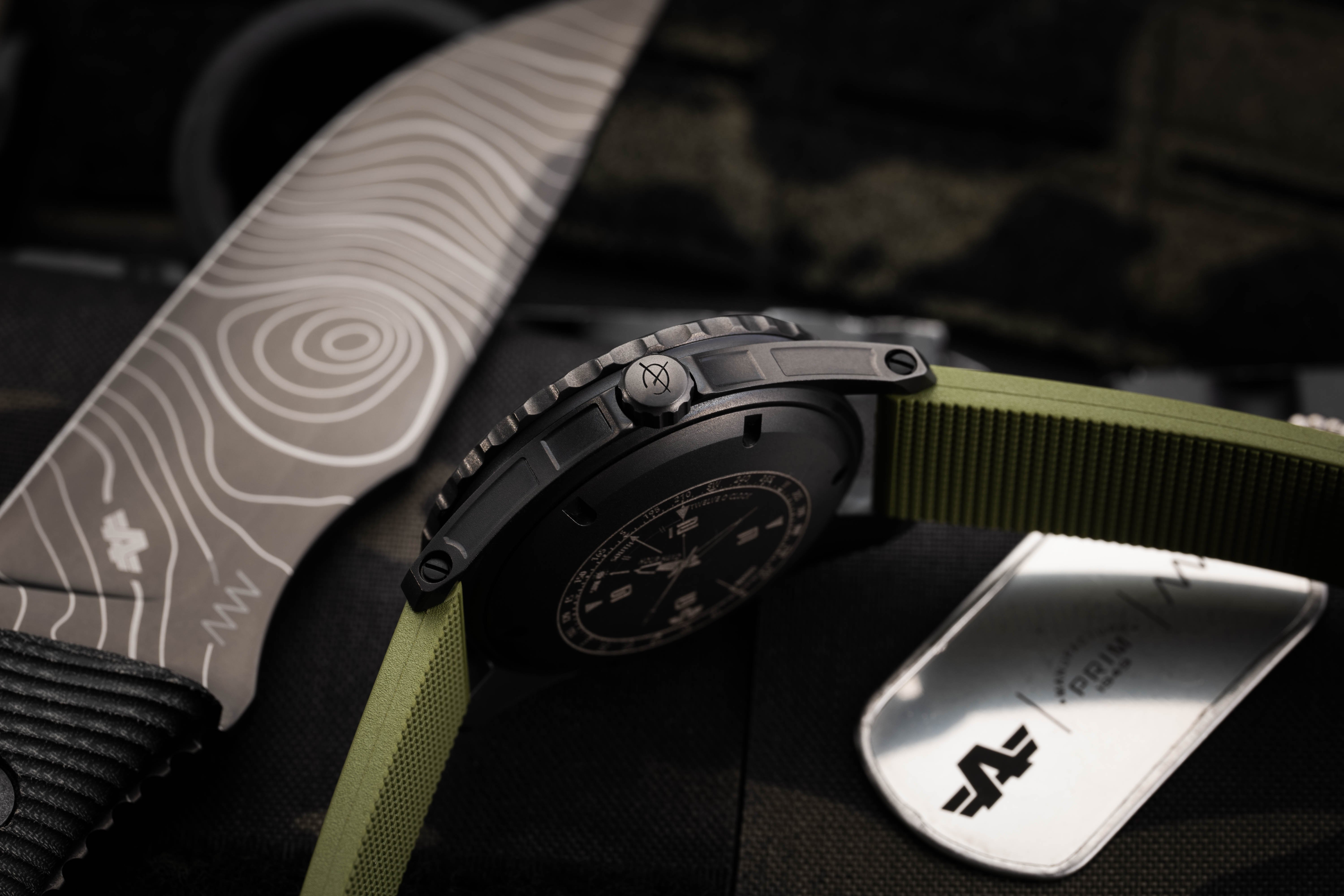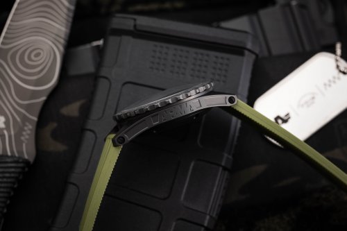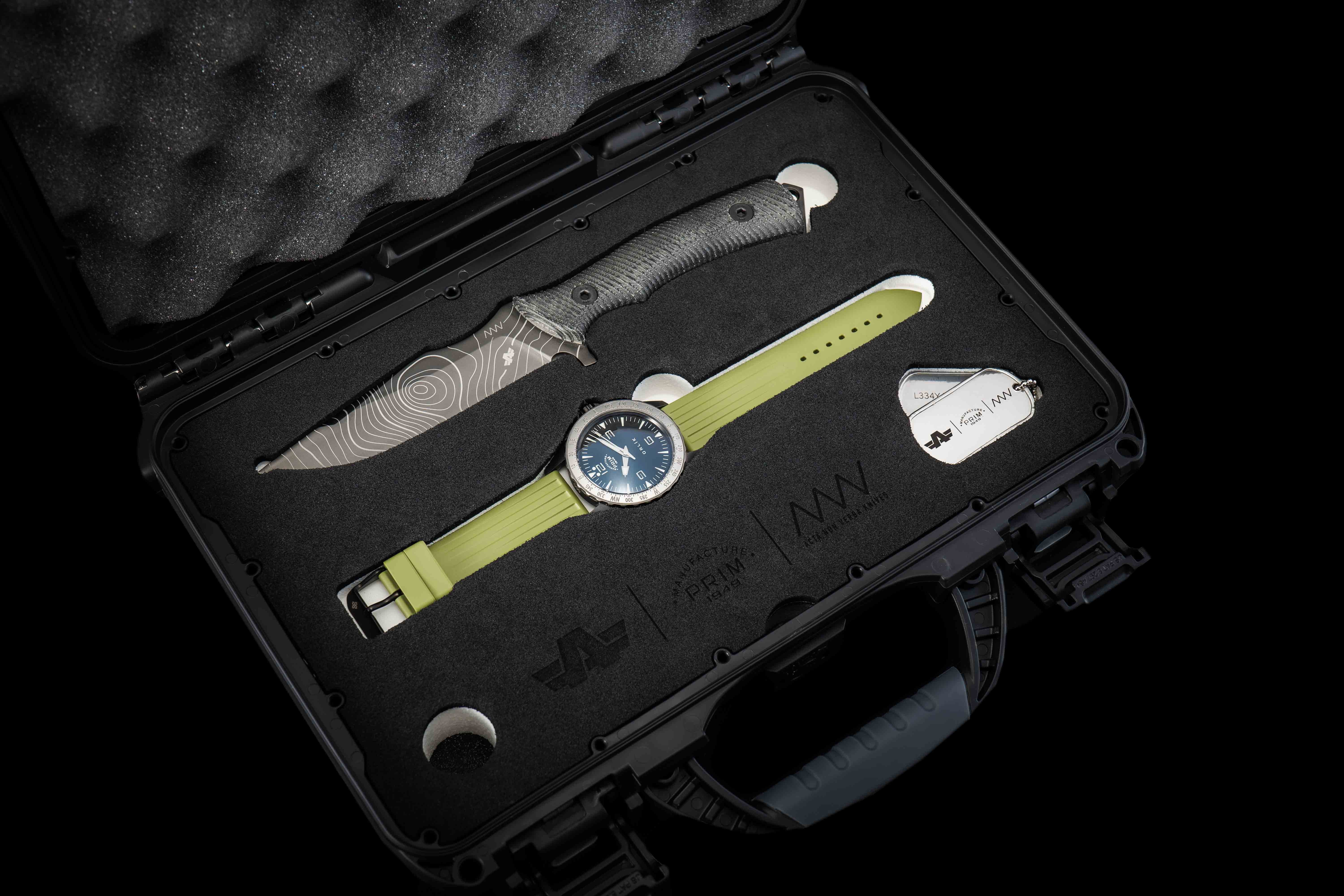Stejně jako hra, i limitovaná edice PRIM ARMA je doladěná k dokonalosti. Včetně balení. Najdete v něm sadu pověstných psích známek, z nichž jedna obsahuje unikátní kód pro spuštění hry Arma Reforger. Nůž z produkce české firmy ANV ozdobený mapou s vrstevnicemi konkrétního místa ze hry nese stejné unikátní číslo limitované edice jako hodinky. Kaučukový olivově zelený pásek můžete vyměnit za náhradní NATO strap v černé barvě.