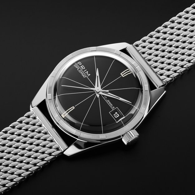 Diplomat vynikne nejen v nerezové oceli, sluší mu i pouzdro z drahých kovů. Tradiční zlato nebo decentní platina promění hodinky PRIM Diplomat v investici a opravdový šperk, který je v rodinách předáván z generace na generaci. Dámská varianta hodinek PRIM Diplomat je dodávána s kovovým tahem, možné je však místo něho zvolit kožený řemínek.