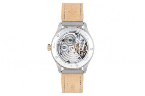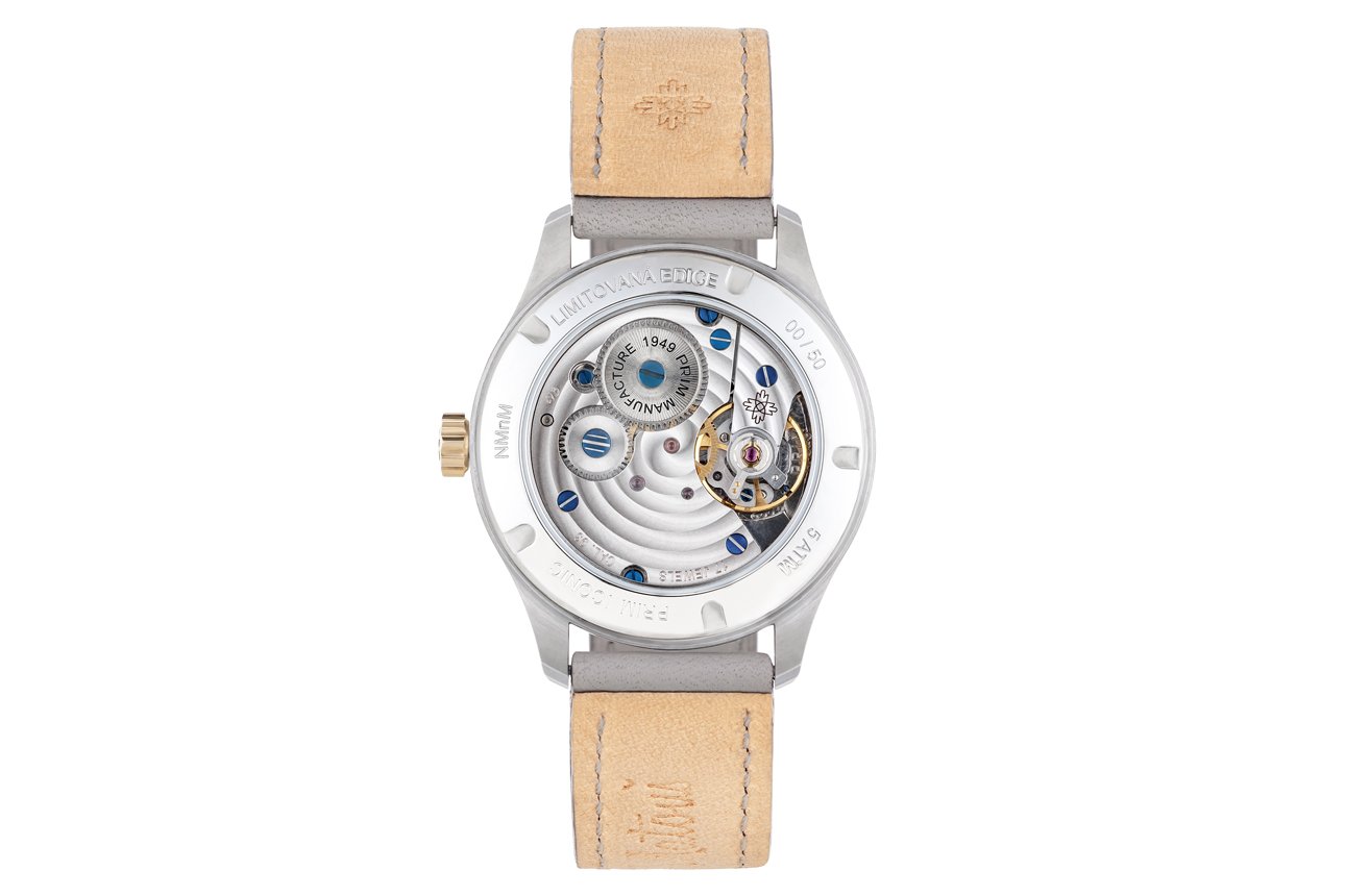 Hodinky pohání mechanický strojek PRIM s ručním nátahem, u bicolor varianty navíc zlacený růžovým zlatem.