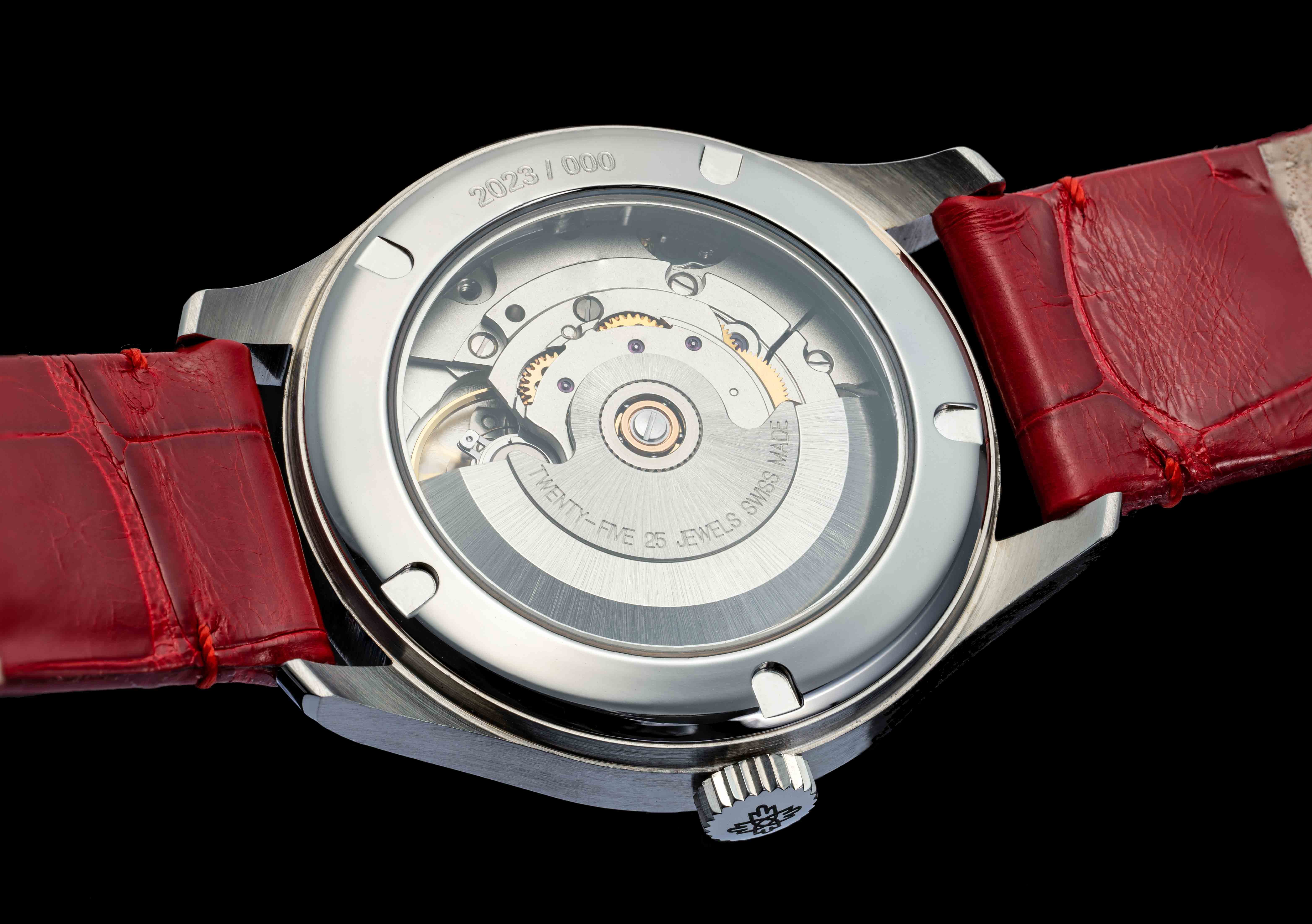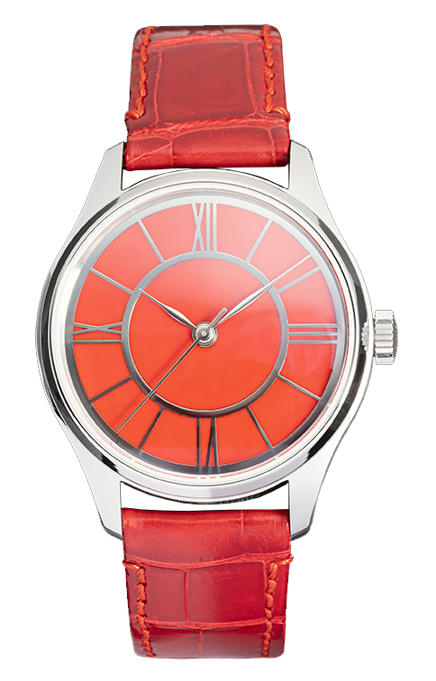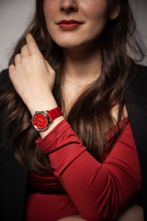 Nejvýraznějším prvkem těchto noblesních dámských hodinek je bezesporu barva. Červená je symbolem vášně, lásky, síly i životní energie. Přitahuje pozornost okolí, a proto okouzlí každou ženu, která se nebojí zaujmout. Čas na elegantním číselníku ukazují římské číslice. Právě takové se používaly na věžních hodinách za dob Magdaleny Černčické. Řemínek z kůže aligátora je stejně jako číselník v jasně červené barvě. Hodinky jsou osazeny švýcarským mechanickým strojkem ETA s automatickým nátahem. Zadní víko bylo našimi designéry navrženo tak, aby poskytovalo dostatek prostoru pro osobní vzkaz nebo vyznání.