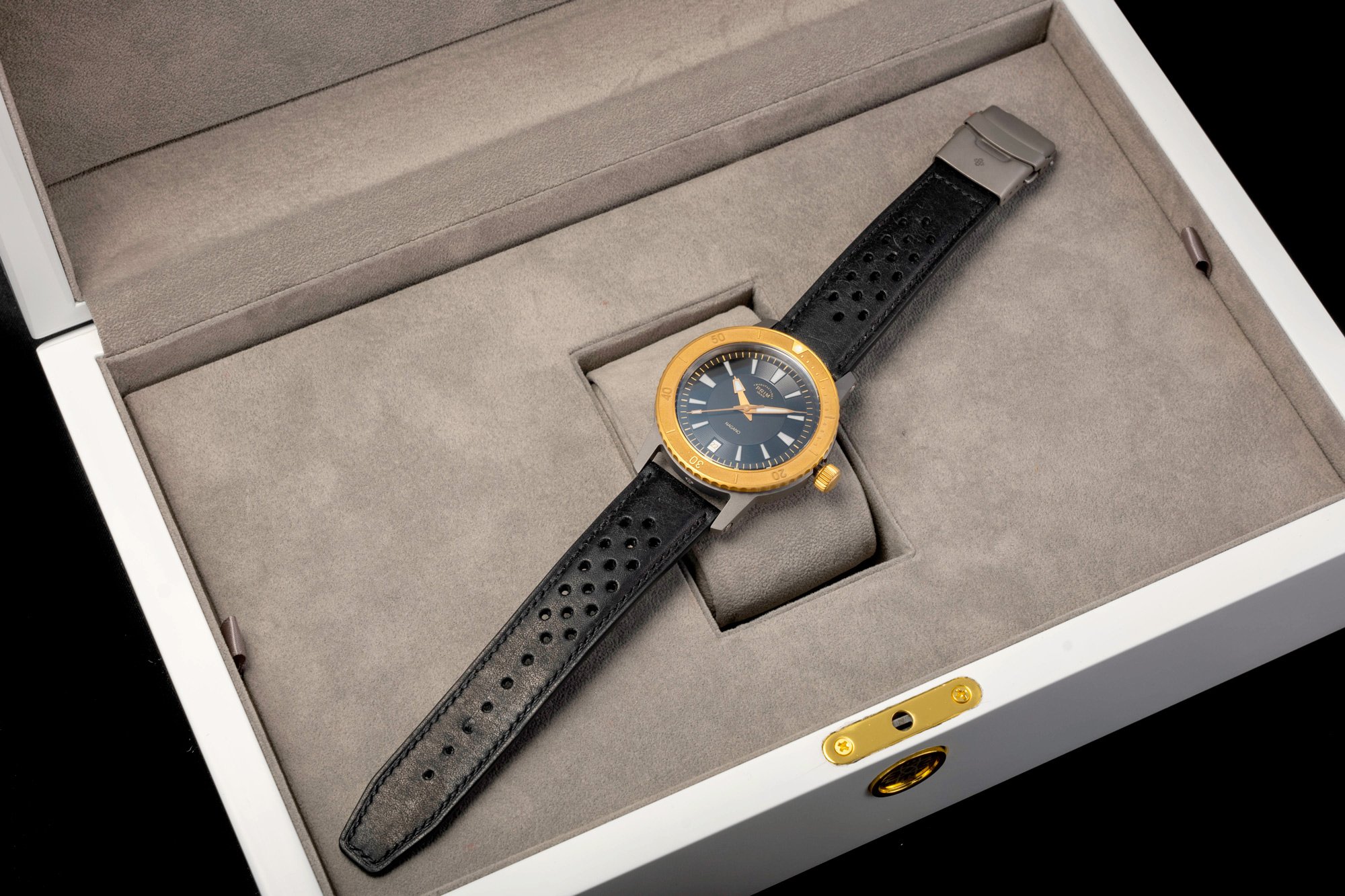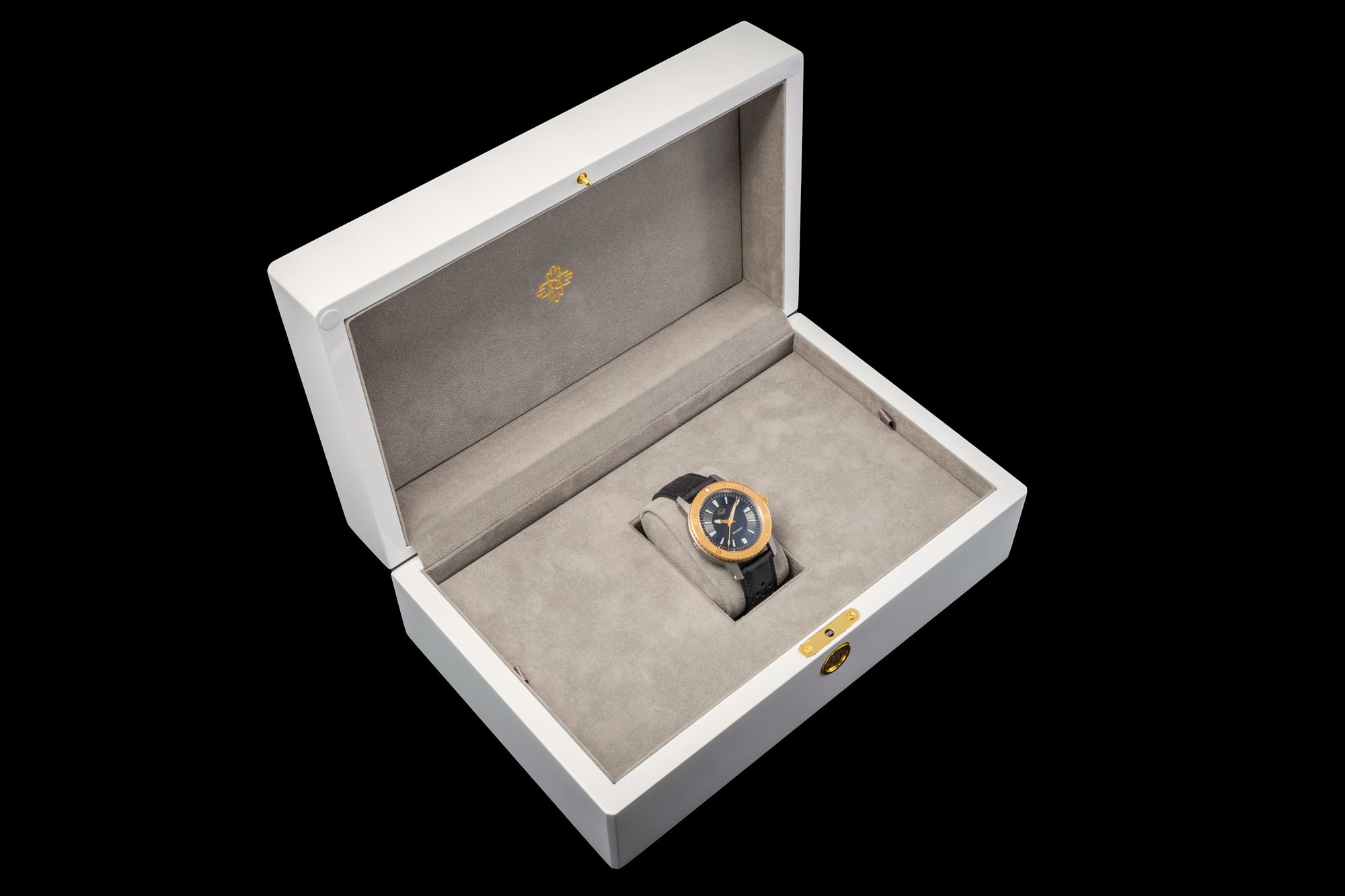Výjimečná limitovaná edice je připomínkou jedné z největších událostí českého sportu. Zlatý turnaj v japonském Naganu znamenal pro náš tým velkolepý návrat na špičku světového hokeje. Pro tuto unikátní příležitost jsme se rozhodli pro neobvyklé bicolor provedení klasického sportovního designu v exkluzivní kombinaci zlata a titanu. Zlatá otočná luneta, korunka i ručky vytvářejí působivý kontrast k černému číselníku a masivnímu matnému pouzdru z titanu. Na boku pouzdra je vyfrézované jméno města Nagano v japonštině.