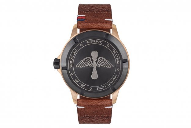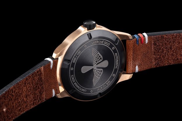 Designem se prolíná inspirace historií československého civilního letectví. Vteřinová ručka je zakončena písmeny „OK“, kterými se již od roku 1930 označují československá a později česká civilní letadla. Stejný nápis najdeme i na číselníku. Datumové okno je netradičně umístěno na pozici šesté hodiny. Toto řešení umocňuje čistý vzhled modelu. Nápis Nové Město nad Metují pod datumovým oknem upozorňuje na místo původu hodinek. Zadní víko zdobí dvoulistá okřídlená vrtule. Stejný znak se nacházel na knoflících předválečných stejnokrojů zaměstnanců ČSA. Světle hnědý řemínek je ozdobně prošit v barvách trikolory.
