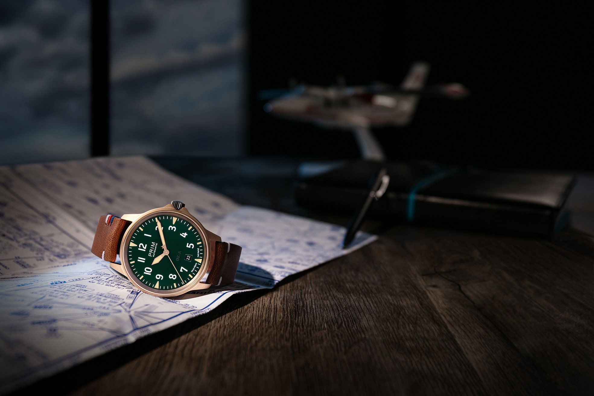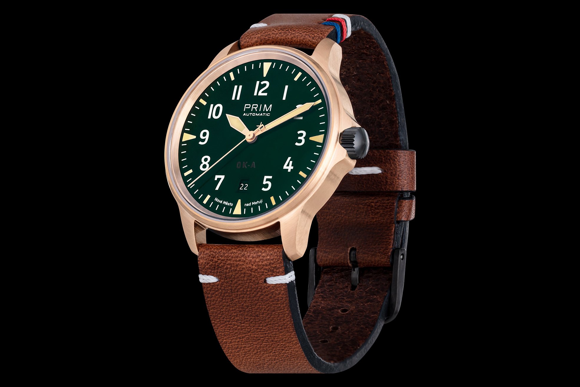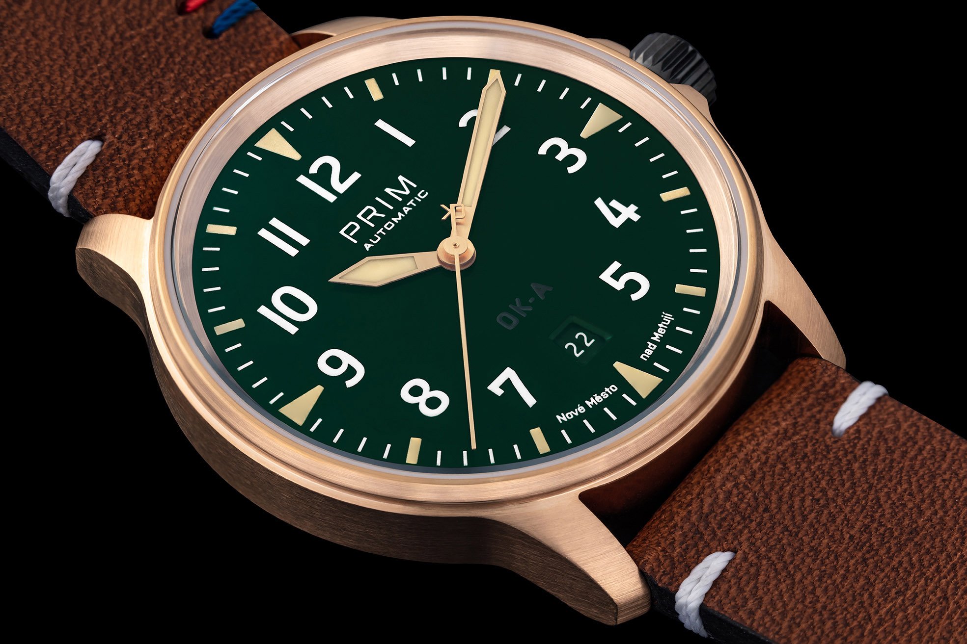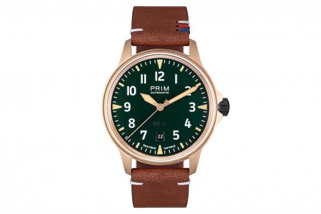 Hodinky z limitované edice PRIM OK-A BRONZ patří mezi sportovněji laděné modely, díky minimalistickému designu jsou však vhodné pro každodenní nošení. Působivé je masivní bronzové pouzdro, originální vzhled hodinek dotváří tmavě zelený číselník. Model je osazen kvalitním švýcarským strojkem ETA. Ostatní komponenty hodinek včetně pouzdra, korunky, ručky i číselníku byly vyrobeny v naší novoměstské manufaktuře.