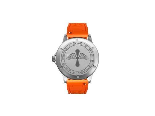 Jednoduché, čitelné, v titanovém pouzdře. Tedy odolné a lehké na zápěstí. Barevně doladěné pro zvýraznění sportovního vzhledu. Oranžová vteřinová ručka souzní s odolným kaučukovým řemínkem.