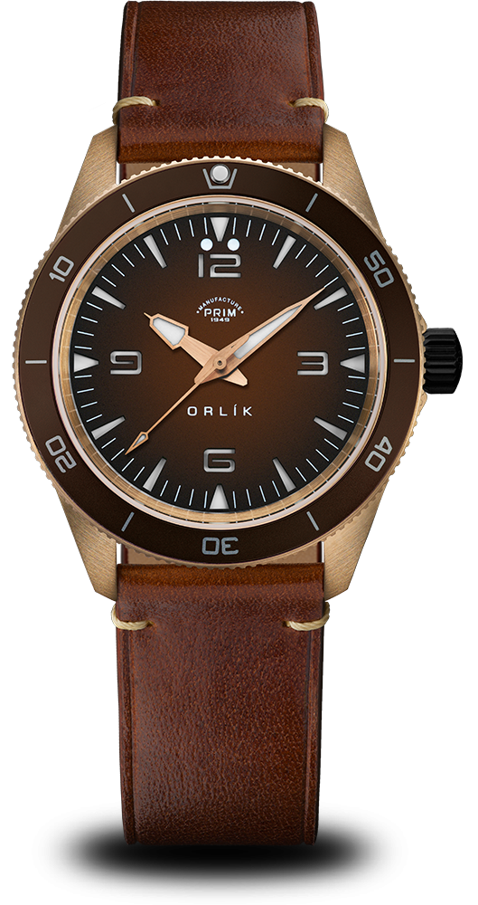 Limitovaná edice PRIM Orlík 38 Bronz je poctou legendě, která se zrodila v 60. letech pro potřeby československé armády. Nová verze věrně navazuje na svého slavného předchůdce – tentokrát v původním průměru 38 mm a s moderním řemeslným zpracováním, které spojuje respekt k historii s důrazem na současný design a funkčnost. Bronzové pouzdro dodává hodinkám nezaměnitelný výraz a díky svým přirozeným vlastnostem získává časem originální patinu, která činí z každého kusu osobitý artefakt.