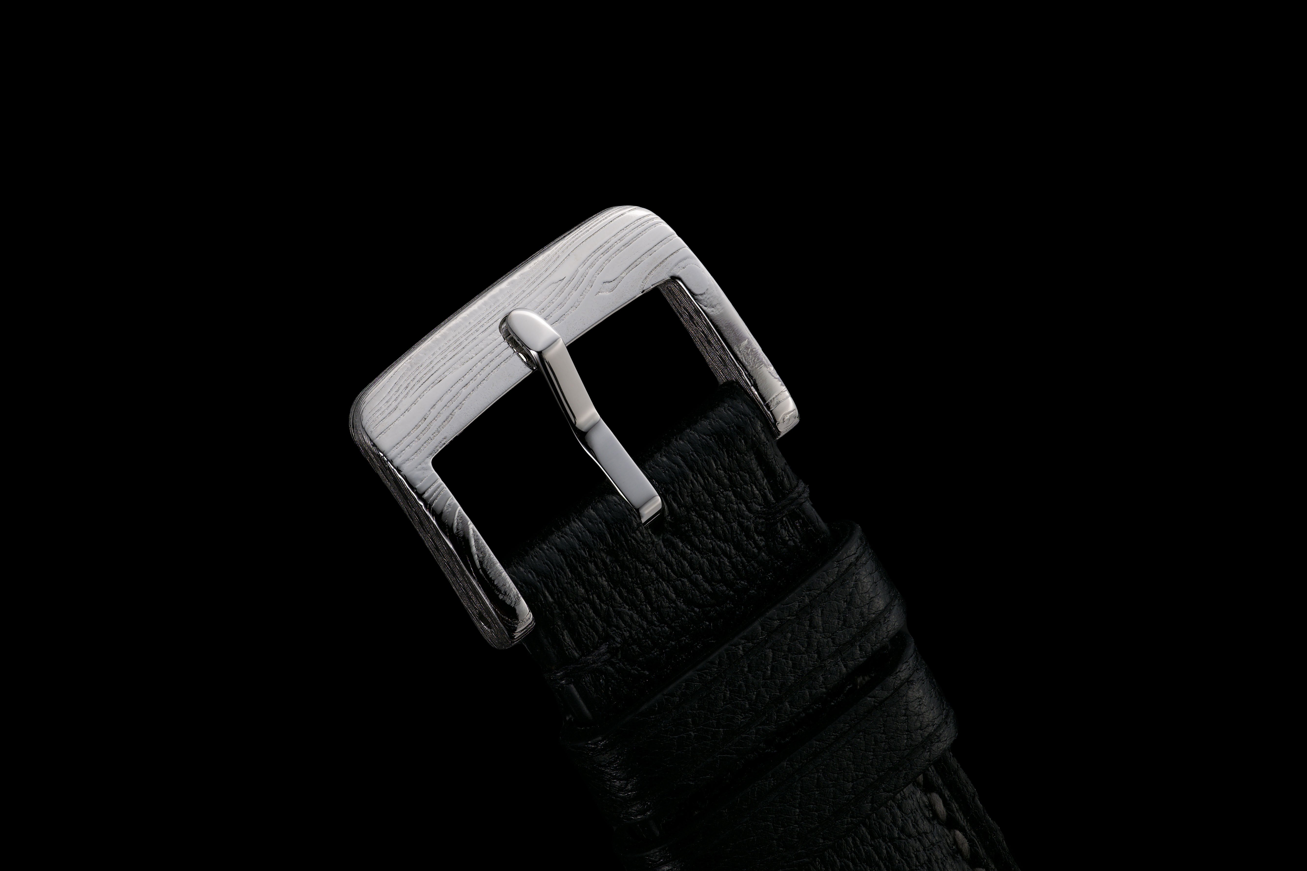 Materiálem pouzdra a spony se stal AUSTENITE. Nerezový damašek kombinující dvě austenitické – nekalitelné oceli. Obě složky vynikají nízkým obsahem niklu. Je hypoalergenní, vhodný pro kontakt s lidskou kůží. Společně pak tvoří podmanivý celek.