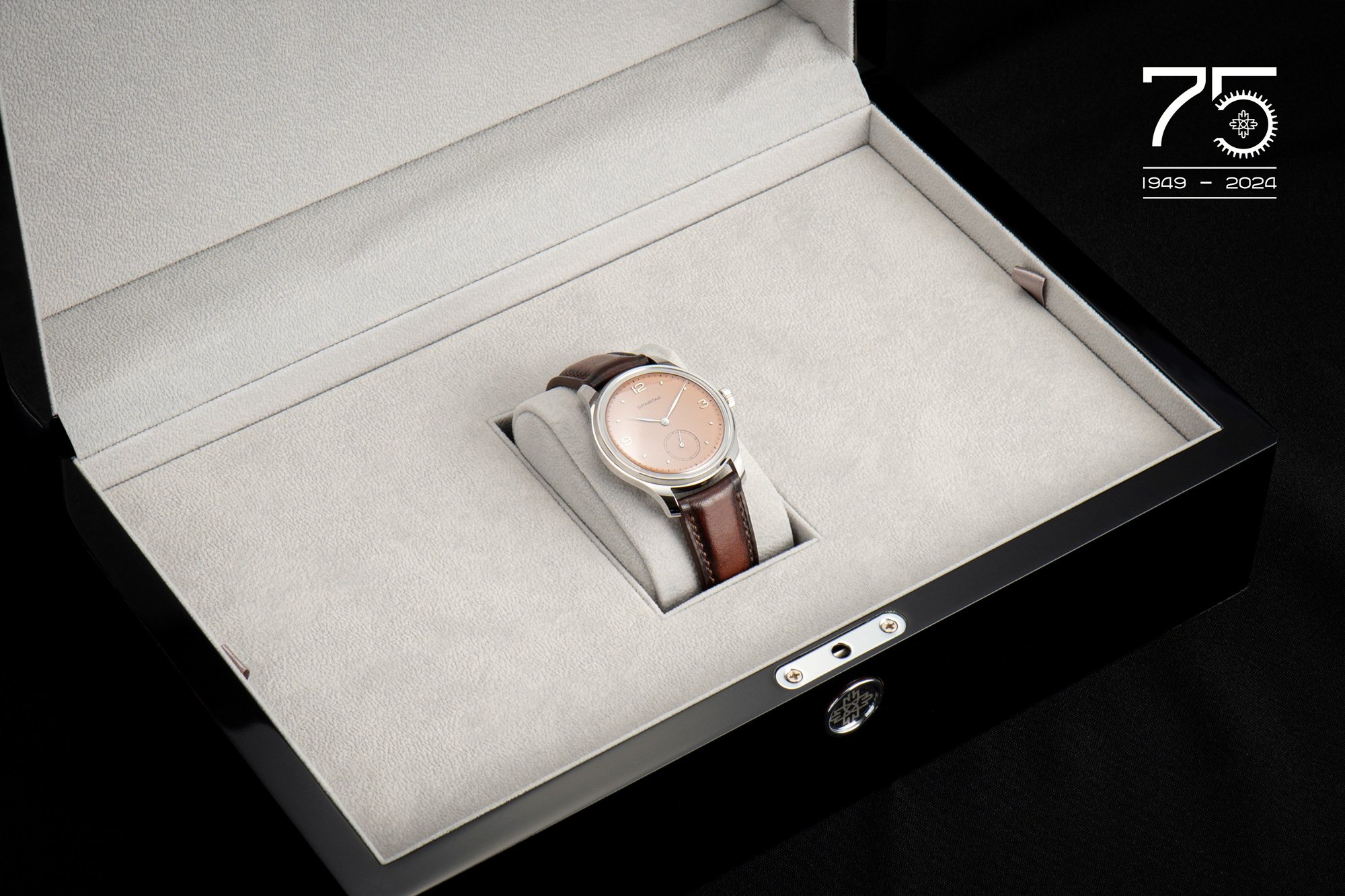 V duchu minimalismu se nese i zadní víko hodinek ozdobené jednoduchým nostalgickým nápisem, připomínajícím 70 let hodinek SPARTAK. Model z limitované edice PRIM SPARTAK RESPEKT pohání mechanický strojek PRIM s ručním nátahem, vyrobený přímo v hodinářské manufaktuře ELTON hodinářská.