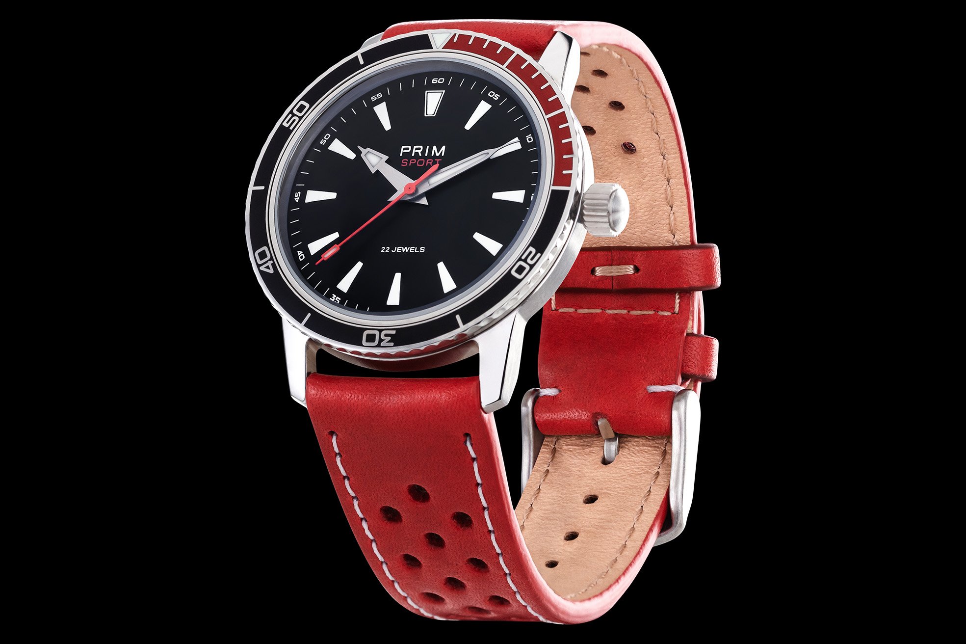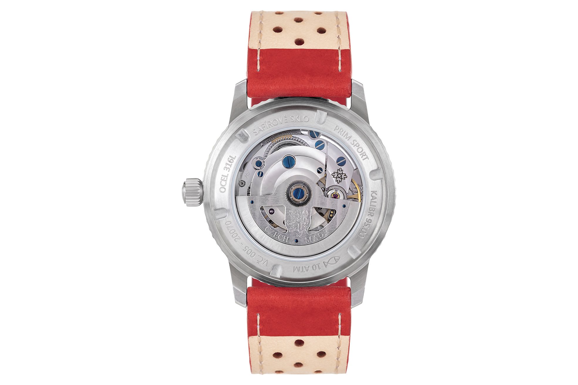 Produktová řada PRIM SPORT 38 je inspirována klasickými sportovními hodinkami z přelomu 60. a 70. let minulého století. Díky použití moderních materiálů a konstrukčním vylepšením splňují však tyto hodinky i náročné požadavky současných zákazníků. Na první pohled zaujme nadčasový a zároveň originální design číselníku se zvýrazněným indexem na pozici 12. Otočná luneta s lumi bodem, vykrytá technologií HyCeram®, je poprvé v historii složena ze dvou barev. Nerezové pouzdro má v odkazu na původní design broušené boky a leštěný vrch. Prosklené zadní dýnko umožňuje průhled na manufakturní strojek PRIM kalibr 95 s automatickým nátahem.