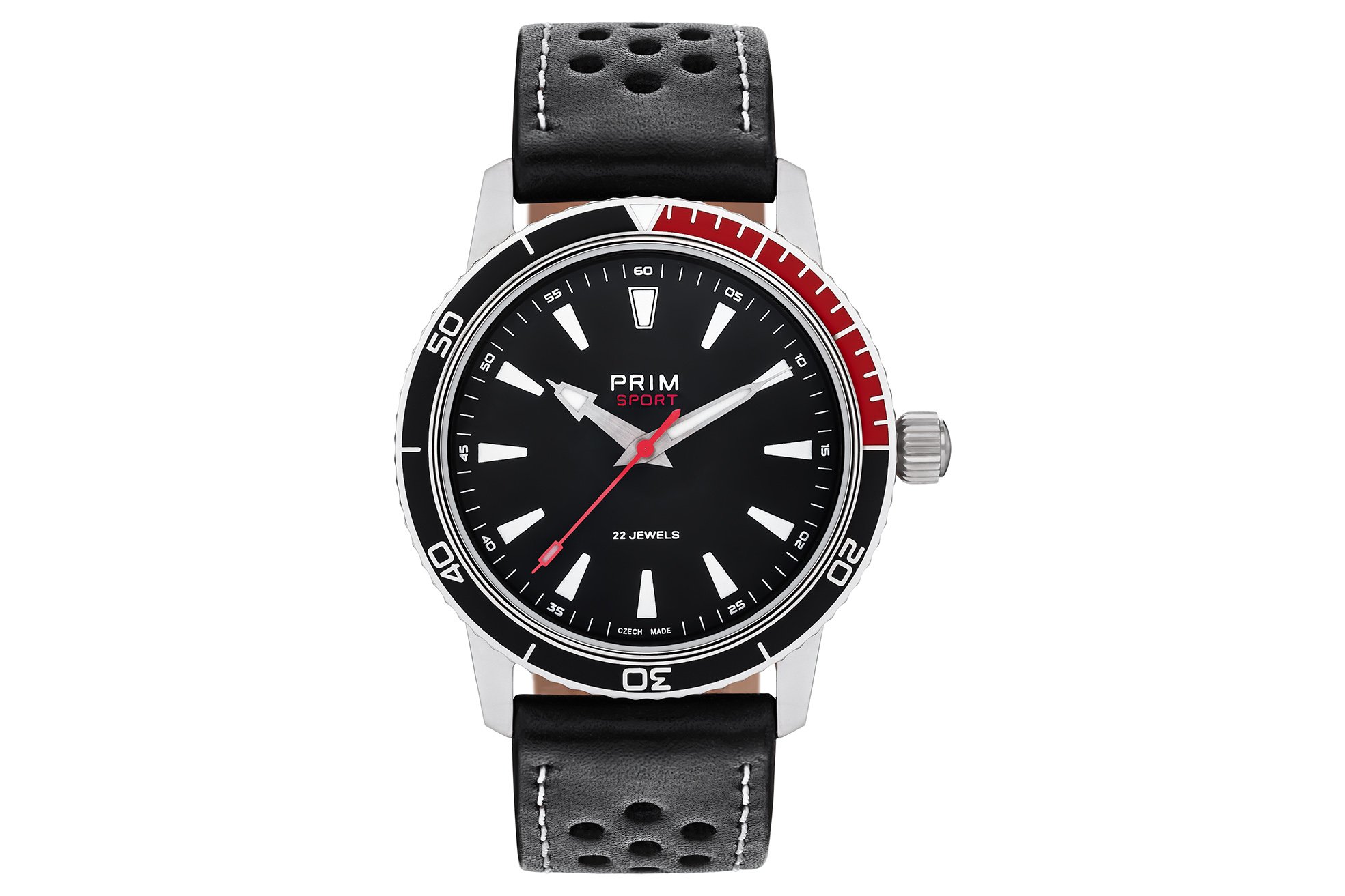 Produktová řada PRIM SPORT 38 je inspirována klasickými sportovními hodinkami z přelomu 60. a 70. let minulého století. Díky použití moderních materiálů a konstrukčním vylepšením splňují však tyto hodinky i náročné požadavky současných zákazníků. Na první pohled zaujme nadčasový a zároveň originální design číselníku se zvýrazněným indexem na pozici 12. Otočná luneta s lumi bodem, vykrytá technologií HyCeram®, je poprvé v historii složena ze dvou barev. Nerezové pouzdro má v odkazu na původní design broušené boky a leštěný vrch. Prosklené zadní dýnko umožňuje průhled na manufakturní strojek PRIM kalibr 95 s automatickým nátahem.