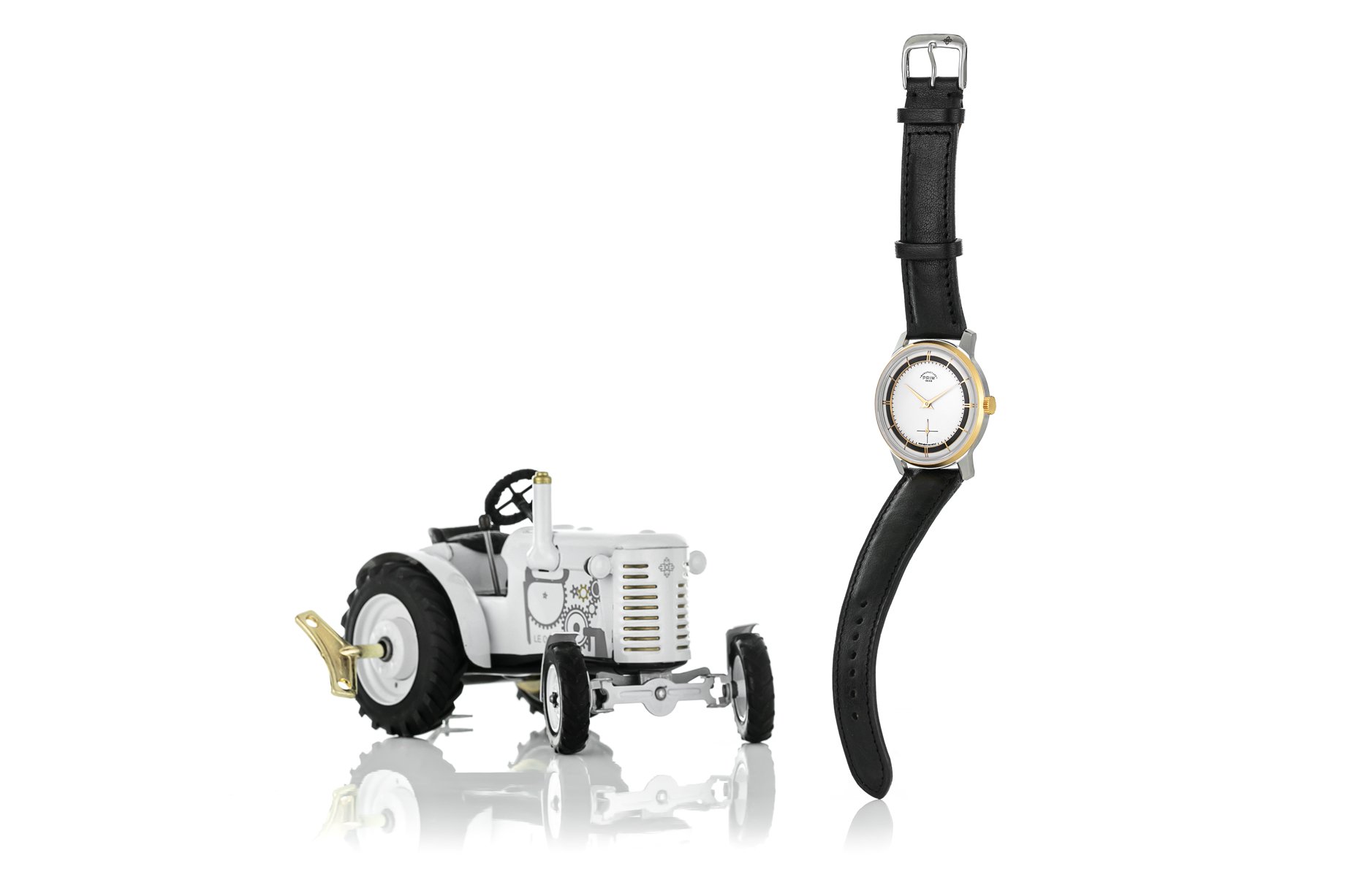 Společenské hodinky inspirované oblíbeným modelem Traktor. Nápadité a netradiční. Ideální kousek do sbírky, díky zvětšenému pouzdru a nadčasovému designu číselníku jsou však vhodné i na běžné nošení.
