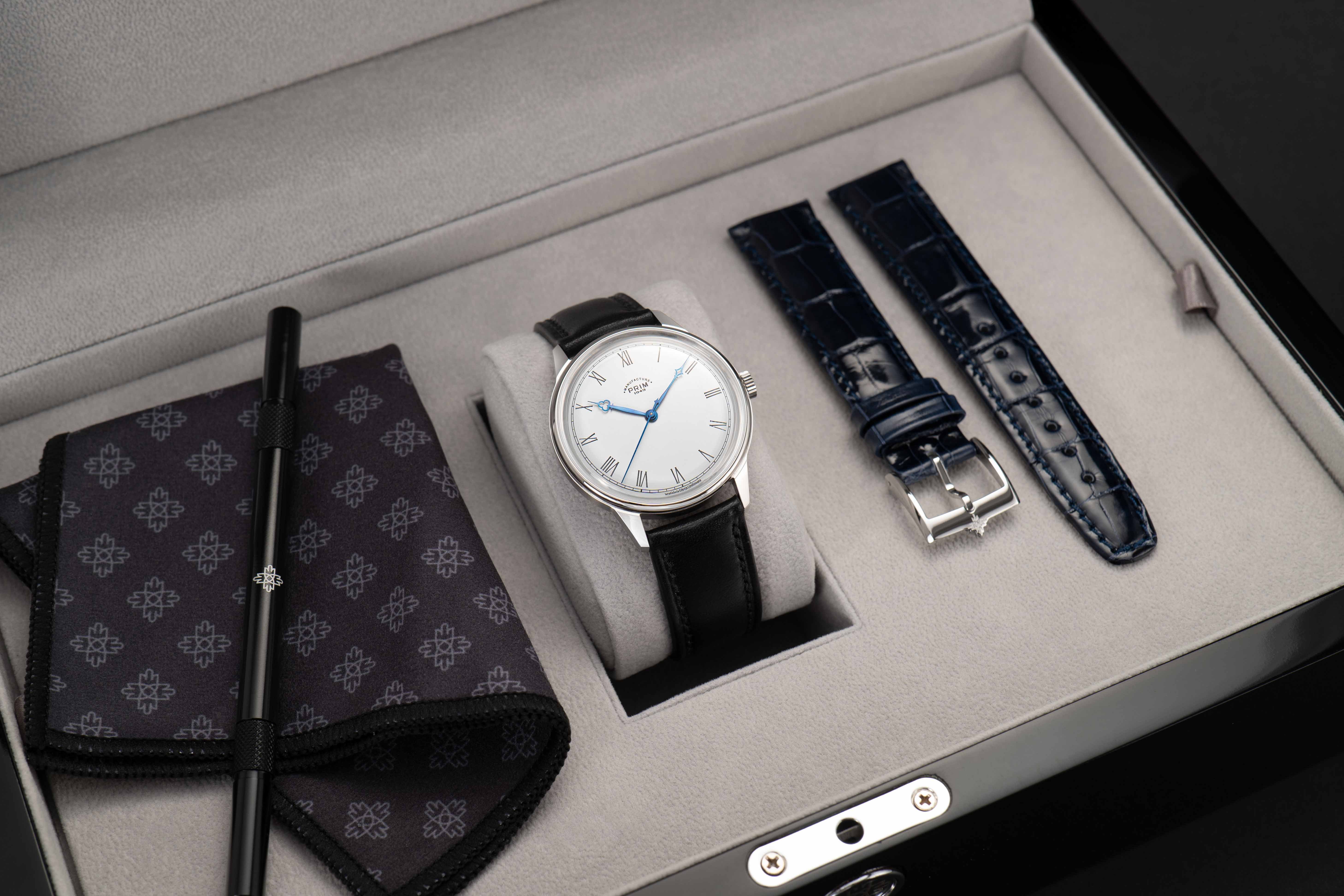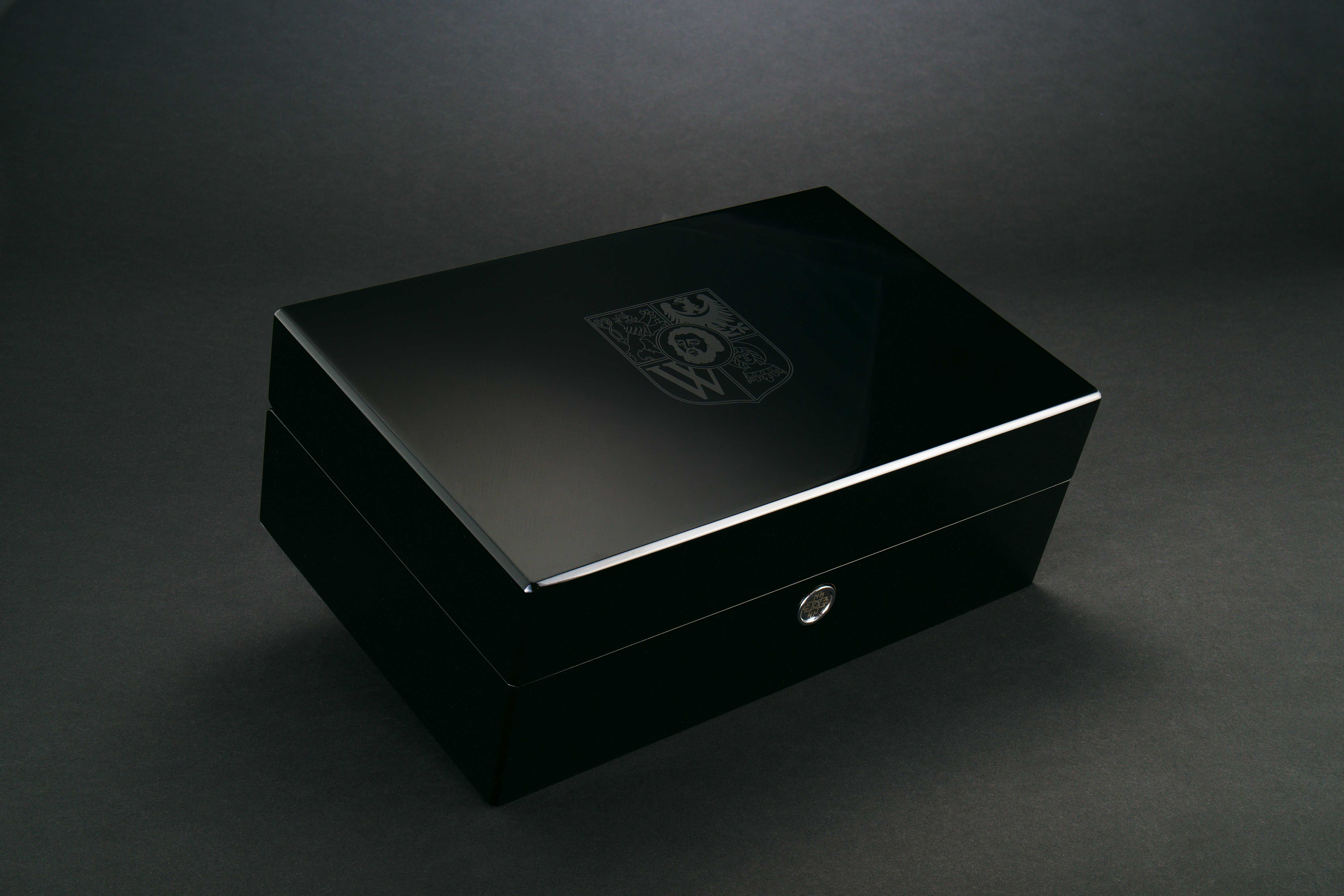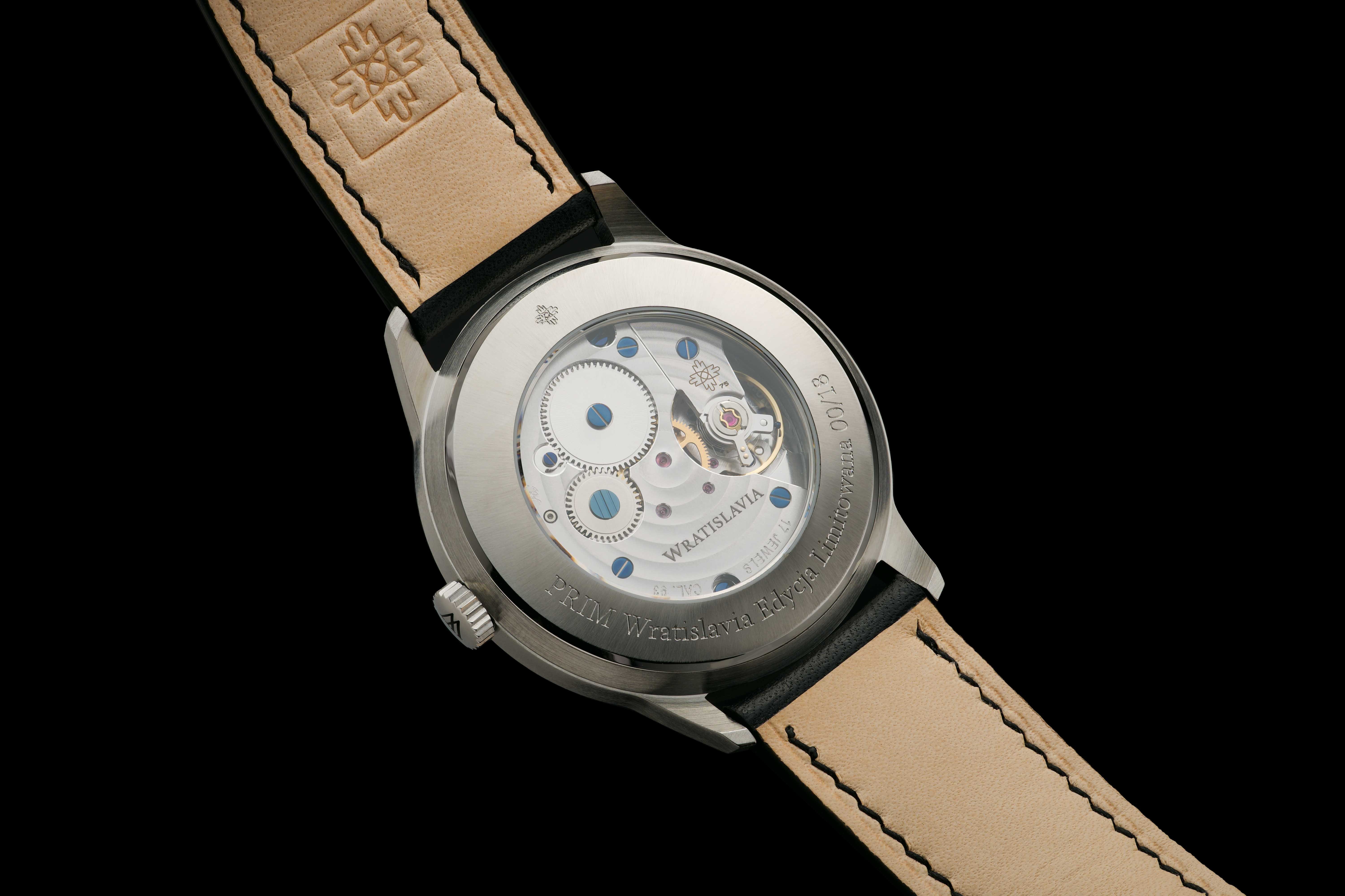 Manufakturowy kunszt czeskich mistrzów zegarmistrzostwa wykracza poza granice dzięki temu wyjątkowemu zegarkowi. Życie nadaje mu manufakturowy mechanizm PRIM kaliber 93 zamknięty w kopercie ze stali szlachetnej. Każdy, kto stanie się dumnym posiadaczem tego modelu, będzie mógł go podziwiać przez przezroczysty dekiel zegarka. Liczba takich szczęśliwców jest ograniczona do zaledwie 18 osób. Elegancję zegarka podkreśla wysokiej jakości skórzany pasek ze skóry cielęcej. Dodatkowo zestaw zawiera drugi ekskluzywny niebieski pasek z aligatora. Nie mniej luksusowa jest czarna skrzynka ozdobiona herbem miasta Wrocławia.