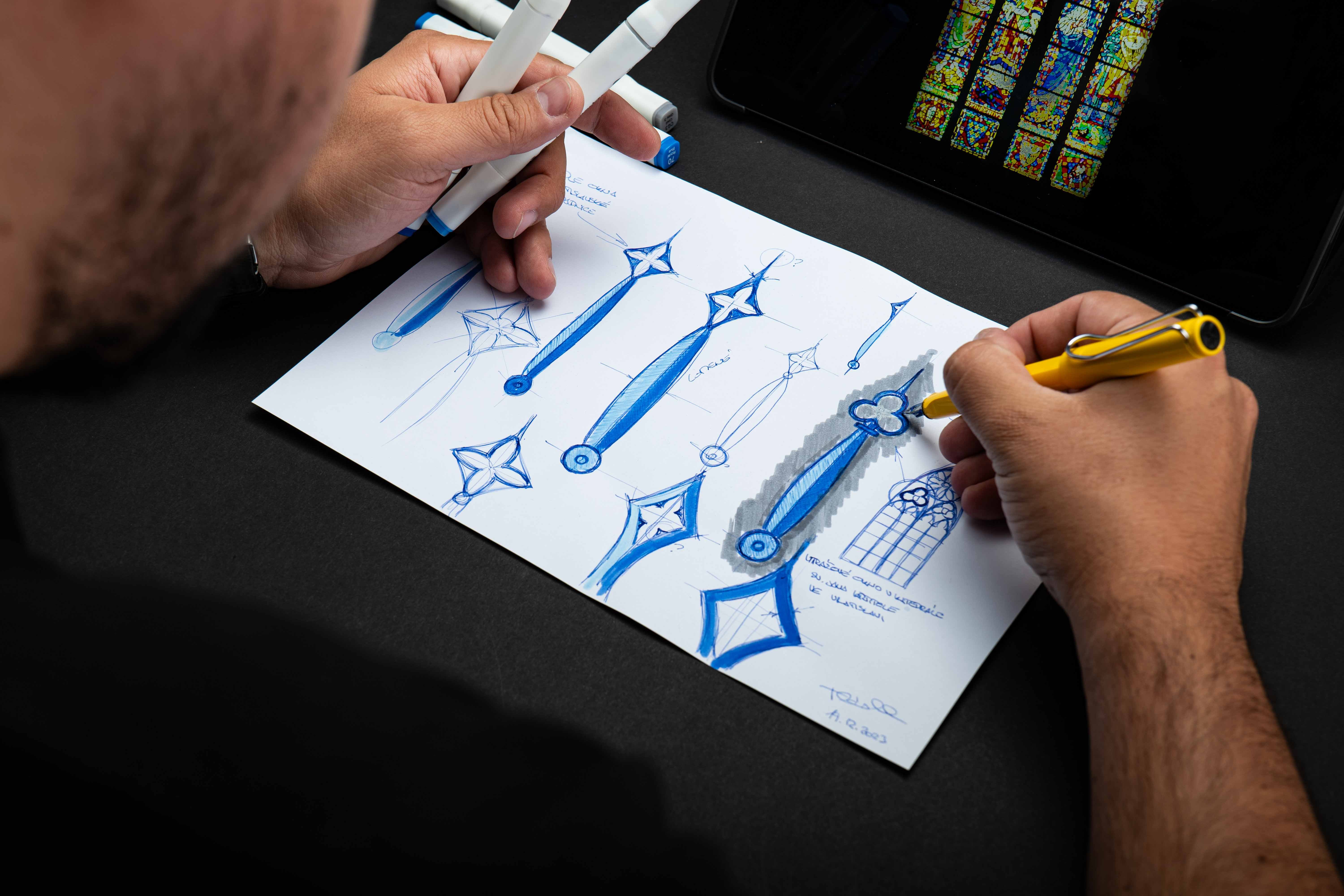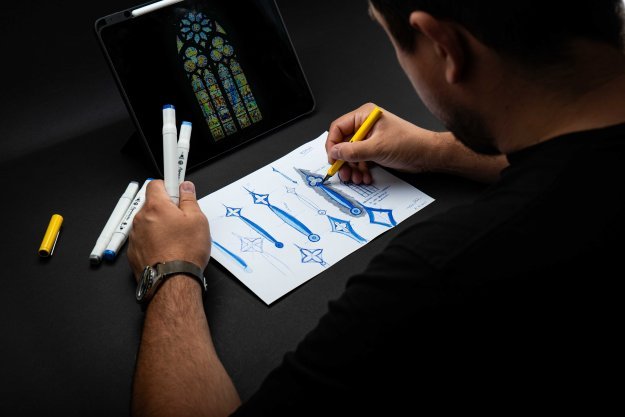 Muzą do projektu wskazówek zegarka stało się witrażowe okno katedry św. Jana Chrzciciela, a na końcu wskazówki minutowej znajduje się kształt czerpany z okna ratusza. Unikalne błękitnienie wskazówek to proces wymagający ogromnego doświadczenia i zręczności, który nadaje zegarkom piętno wyjątkowości w rzadkim szczególe.